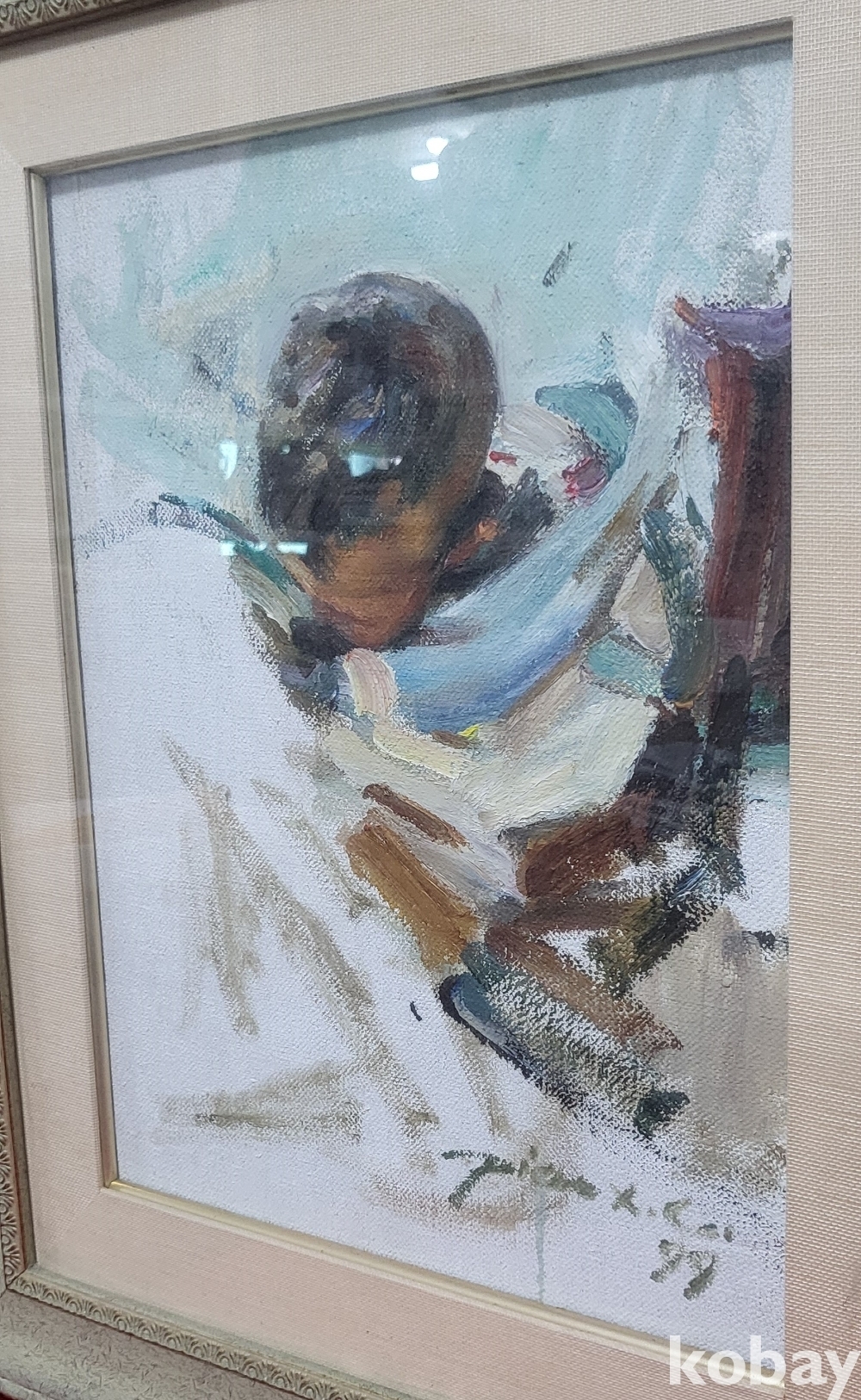 작가 사인이 보이는 켄버스 유화 인물화 6호급입니다,