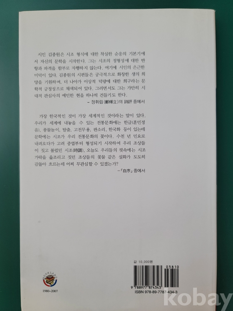 김종원(전라북도 장수: 1949) 처녀시조집.