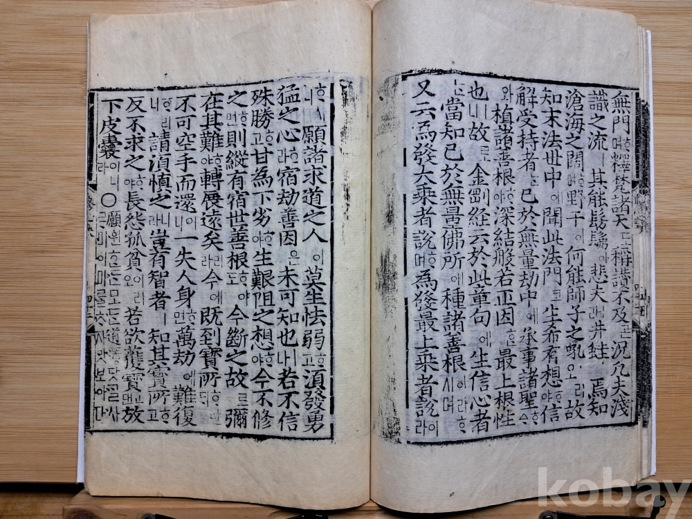 | 목우자수심결은 1467년 간경도감판을 1500년대 번각한 책인데 대의 명필가인 안혜安惠, 유환柳晥, 박경朴耕 등이 정성스럽게 필사하여 새겼기 때문에 번각본飜刻本 또한 글자가 아주 정교한 편이다 | ||