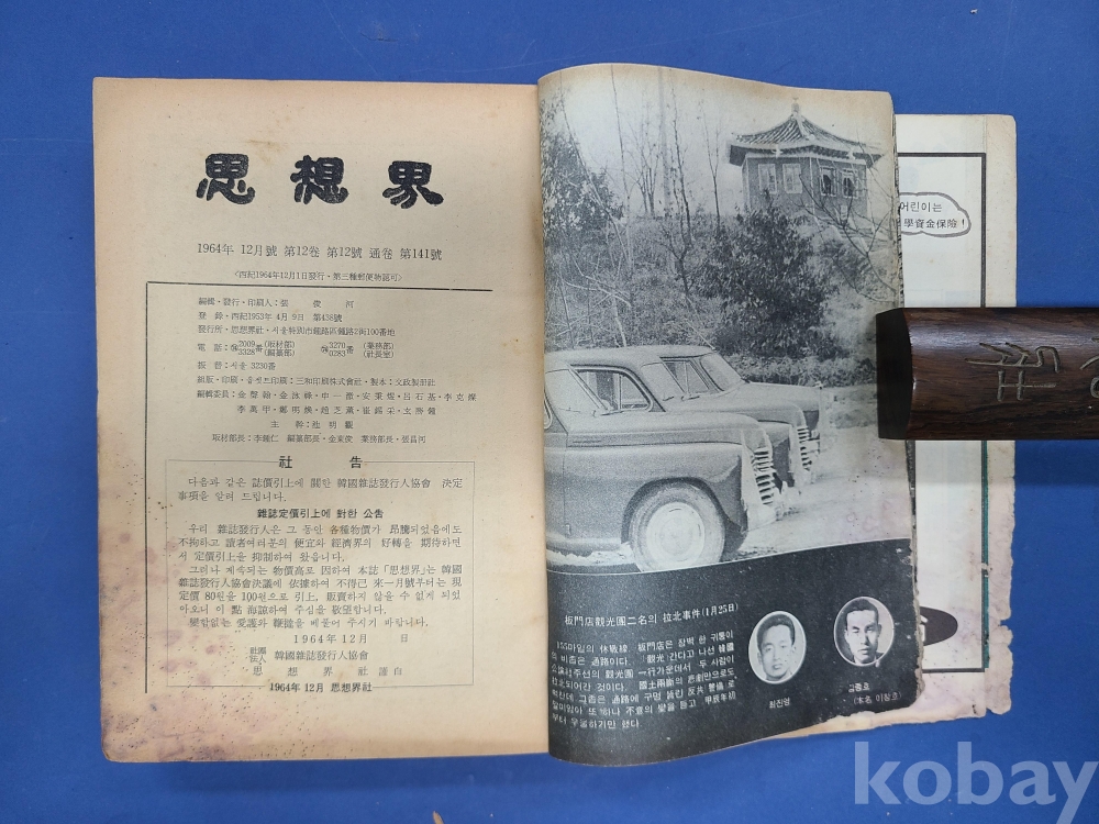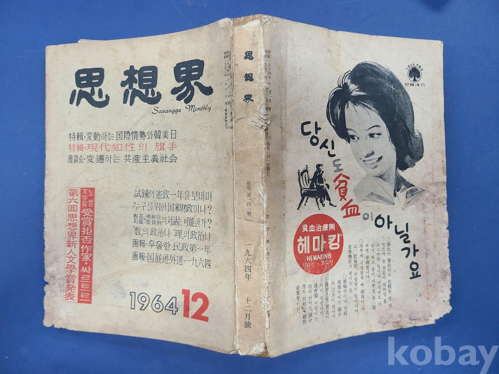 ▶사상계(1964년 12월호)/사상계사,380쪽/전체적으로 헐었고, 얼룩있음