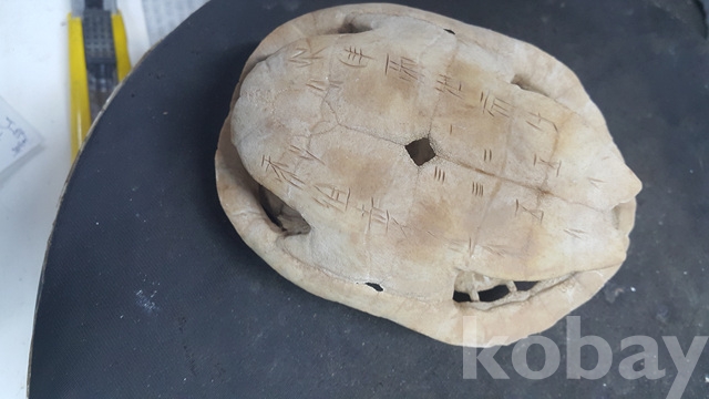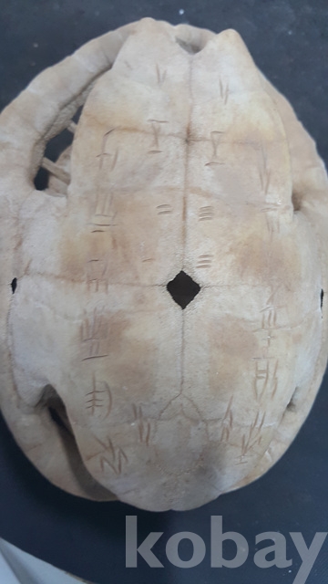 j-44.오래된 출토로사료되는 거북상형문자가 조각된 자연거북껍질