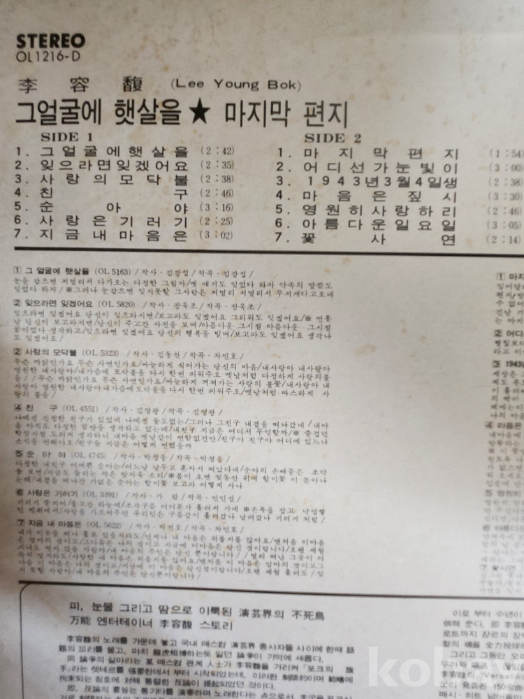 ※ 오래전 추억의 회기LP음반 이용복1975년6윌제작