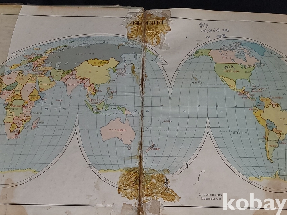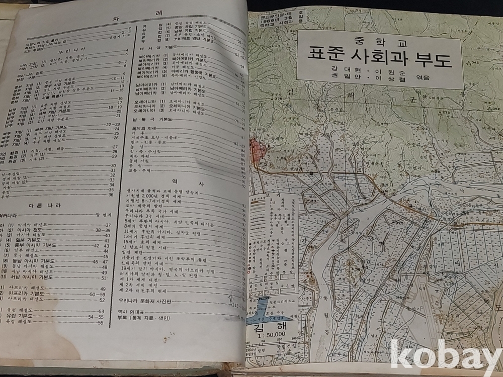 빈티지 세월 감이 느껴지는 1966년 중학교 표준 사회과 부도 교과서입니다.