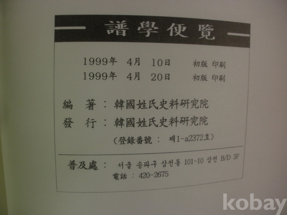 보학 편람 (1999년, 한국성씨사료연구원)