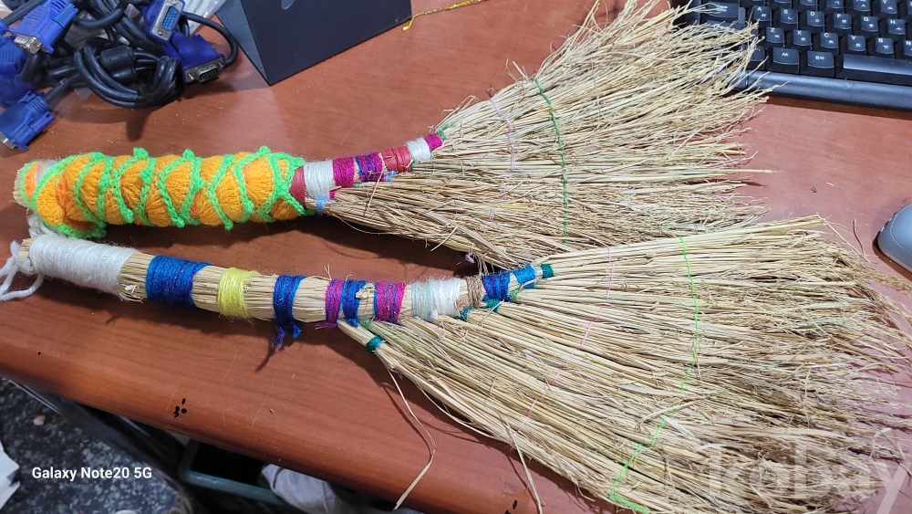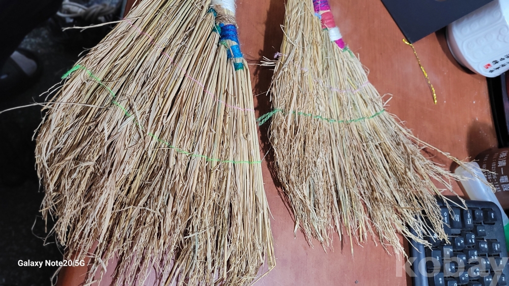 동네 어르신이 만드신 사용가능한 '짚으로 만든 빗자루'입니다.