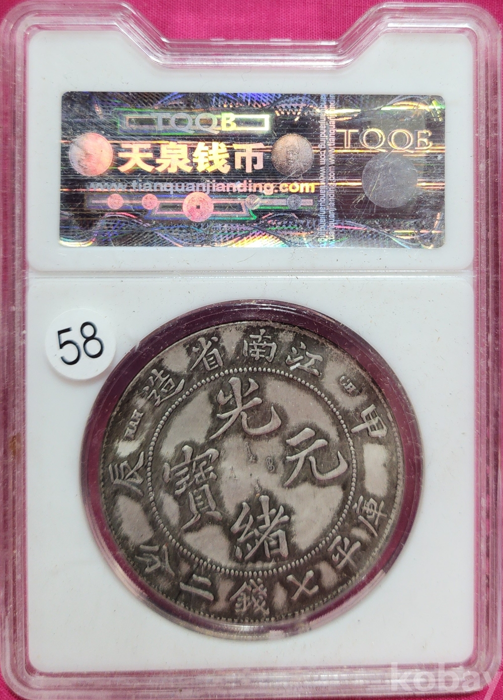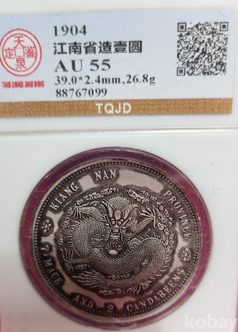1904년 큐알코드(QR CODE)가 함께하는 은색 광서원보 (光緖元寶)' 화패로 밀봉된 상태입니다,
