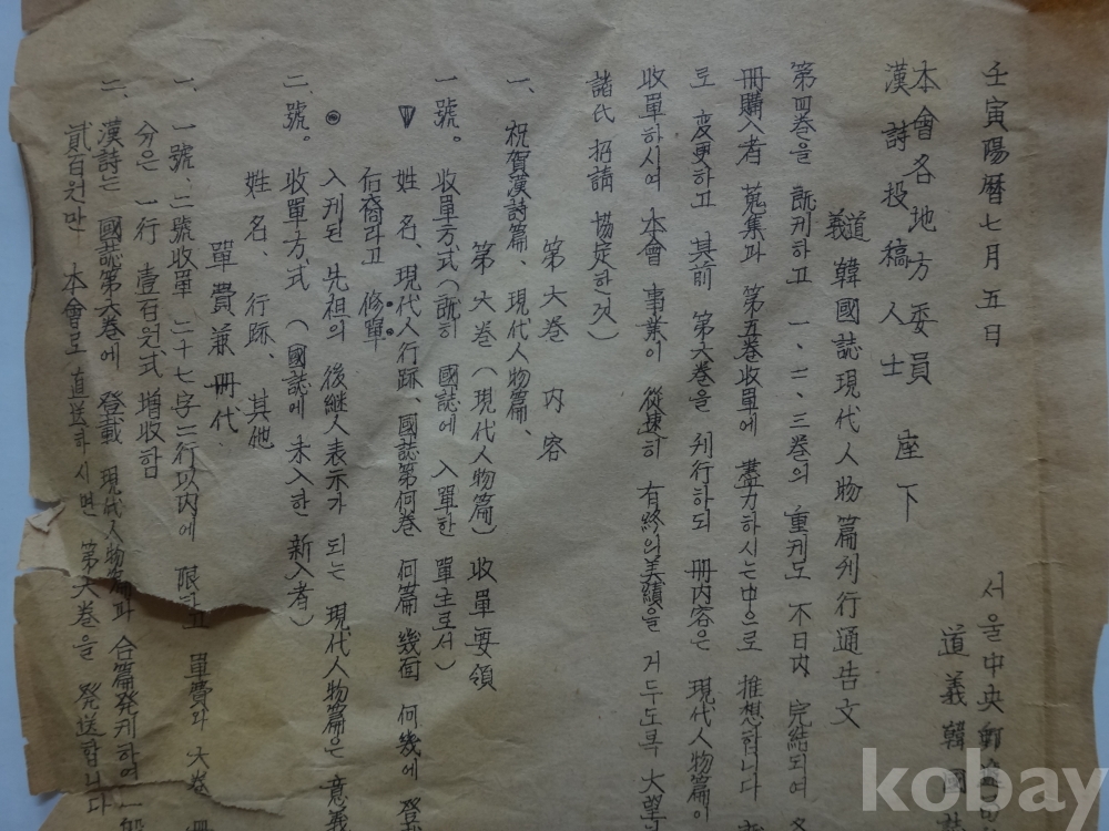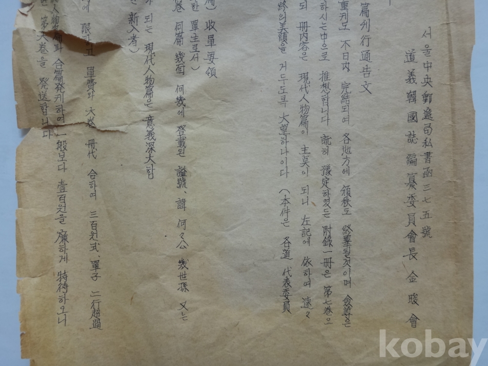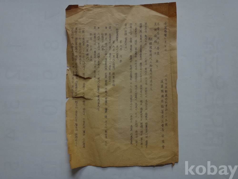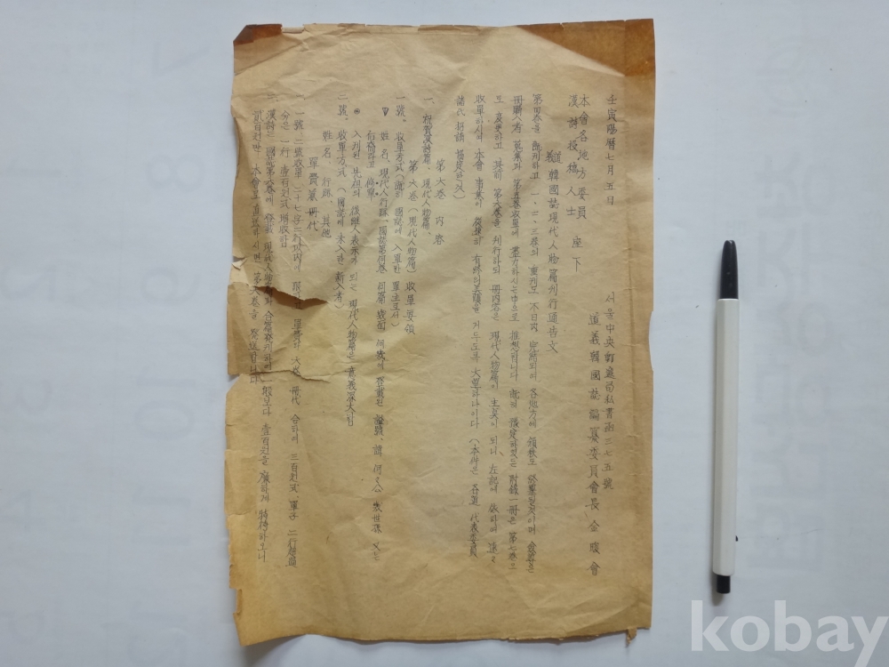 (도의) 한국지 현대인물편 간행통고문 (임인년, 1962년)