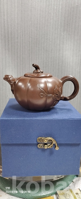 b-113.고급상자에담긴 중국유명도예가 장륭의 허박문양자사다관