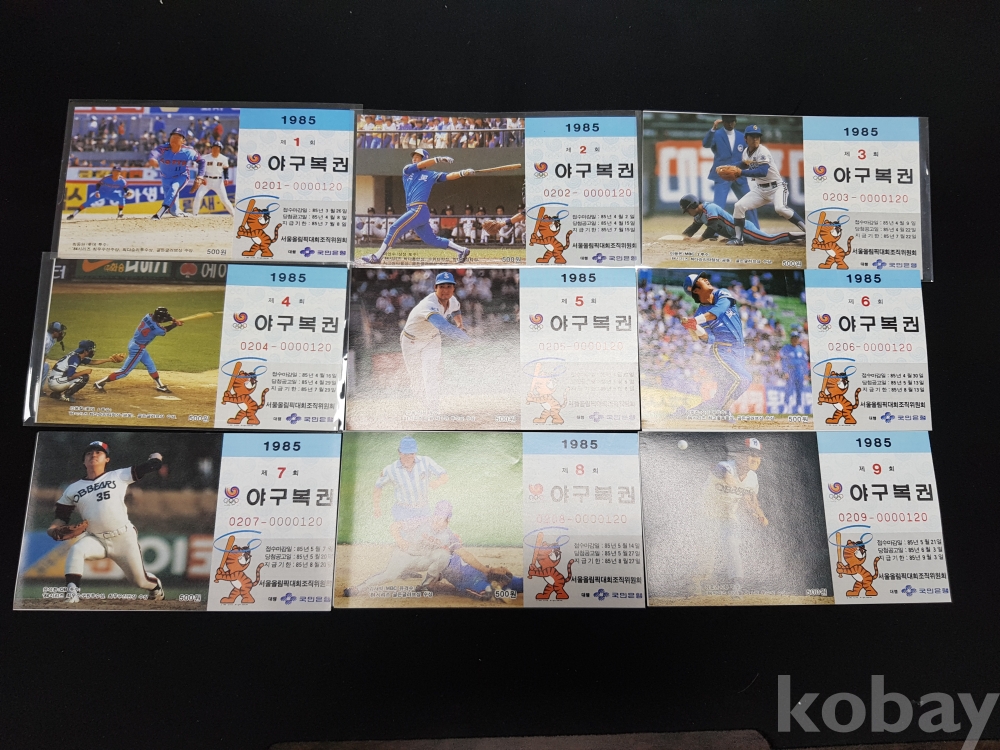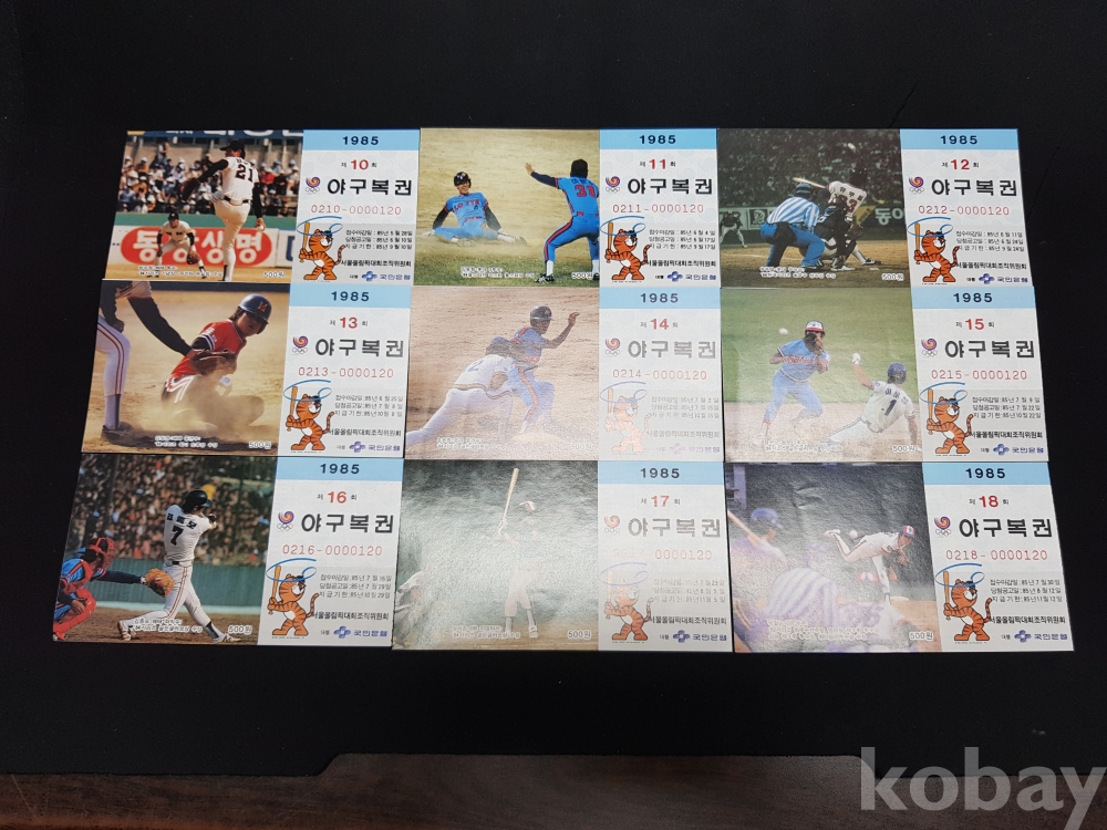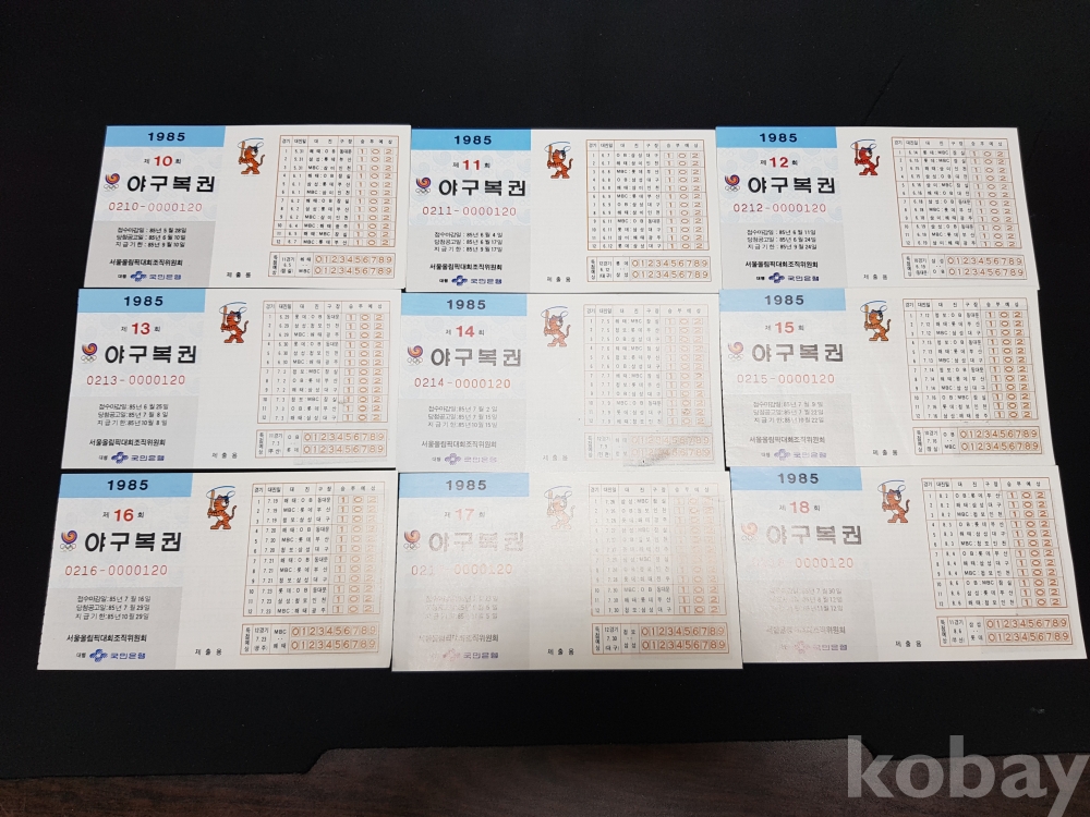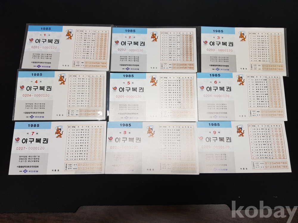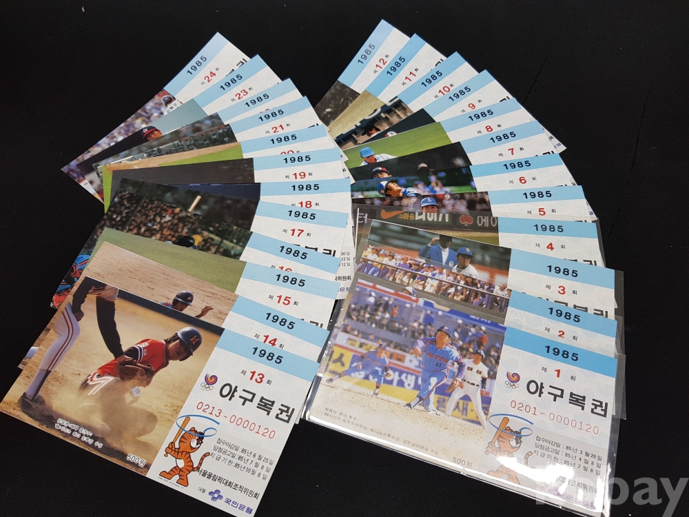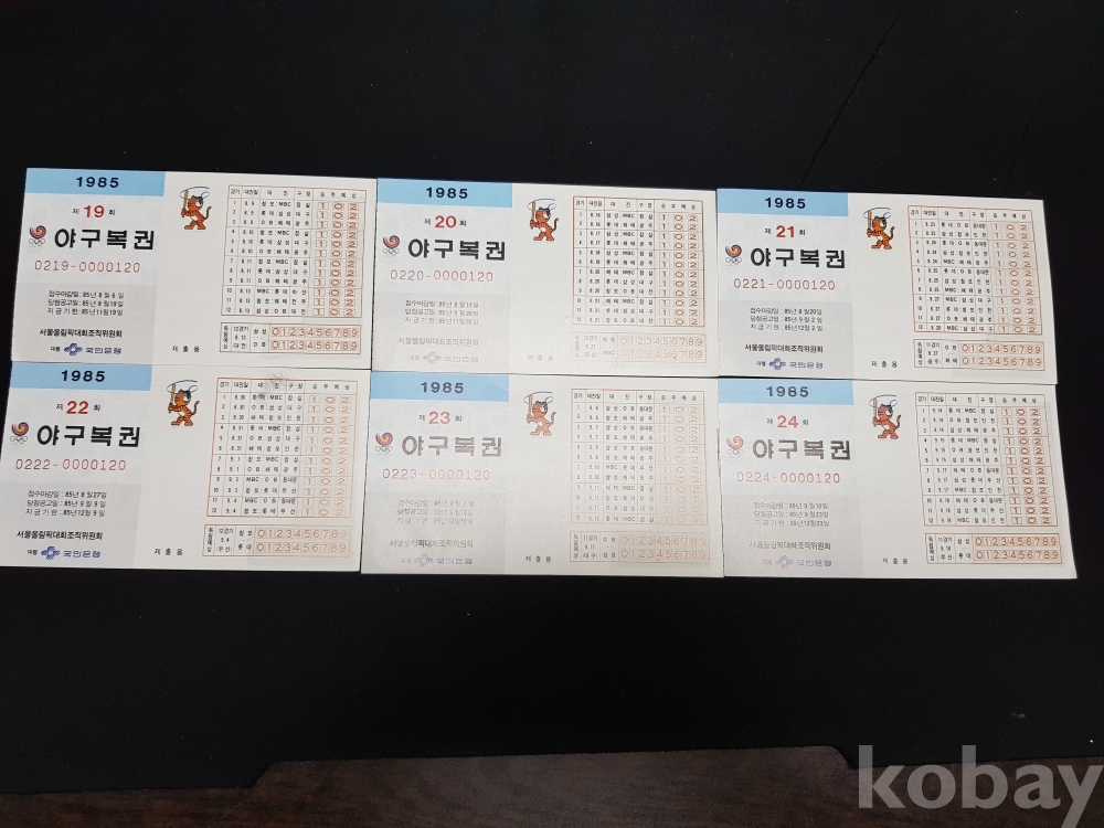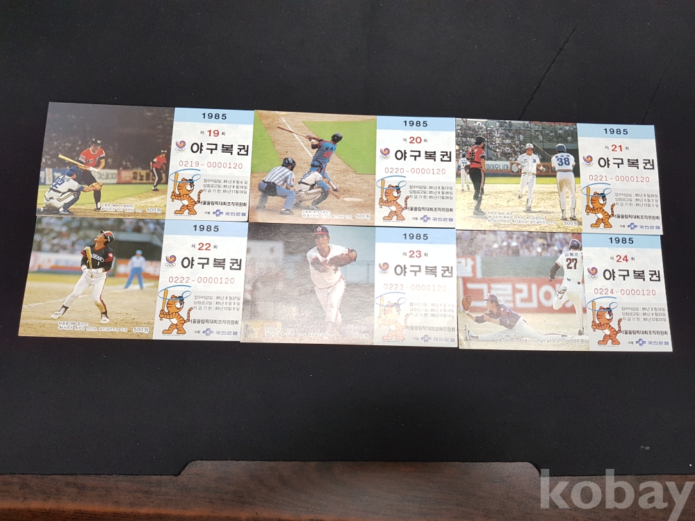 - 미사용 1985년 야구복권 제 1회 ~ 제 24회 일련번호 120번 24종 모음