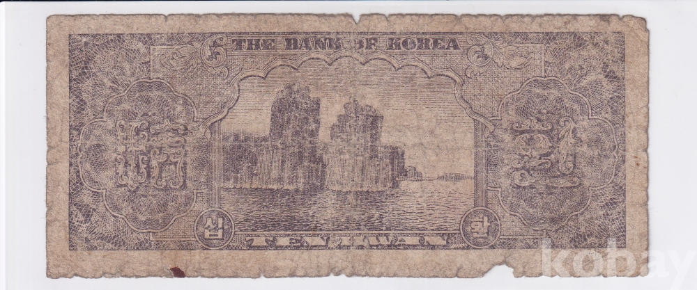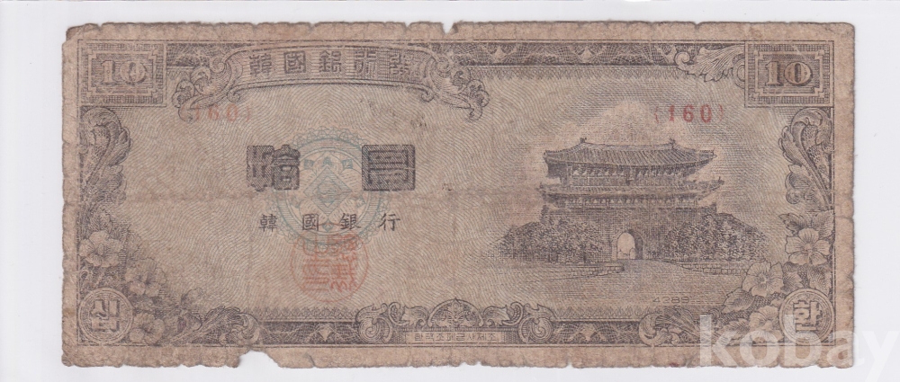 - 4289년(1956년) 남대문 신 십환 백색지 판번호 160번 사용제 지폐