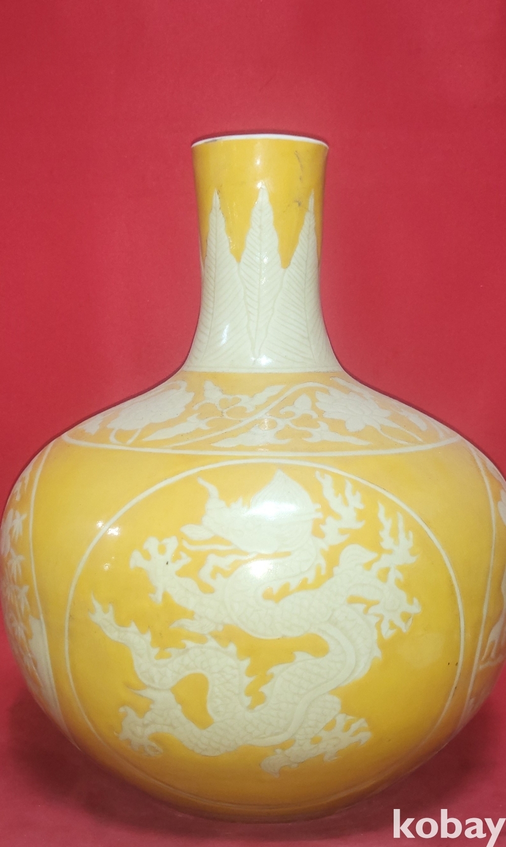 대명선덕연제 관지 황유 용과 학문양 대형급 천구병입니다,