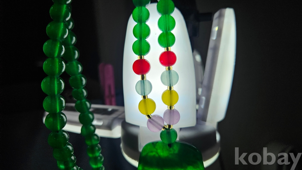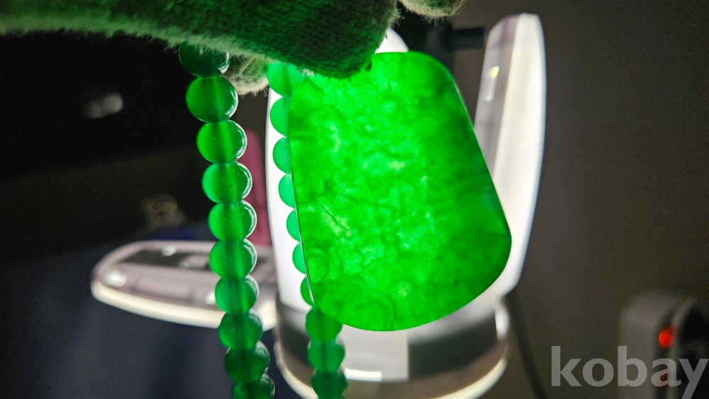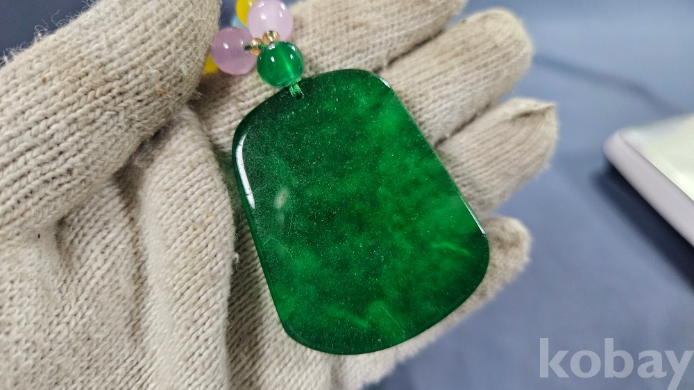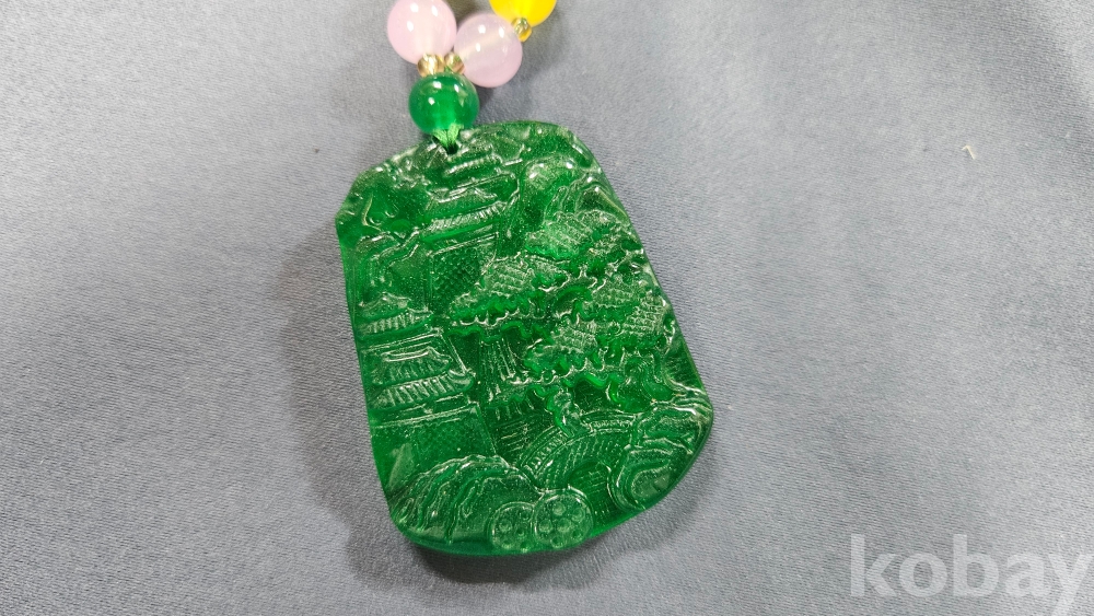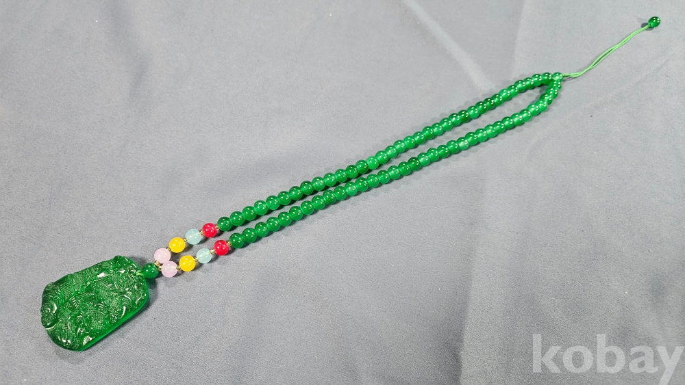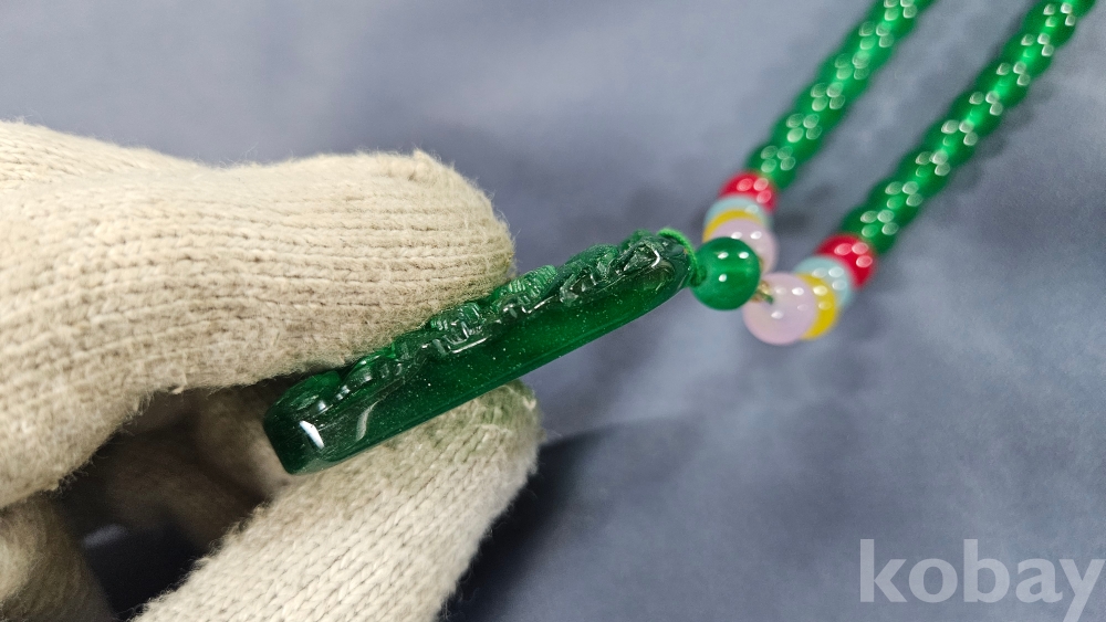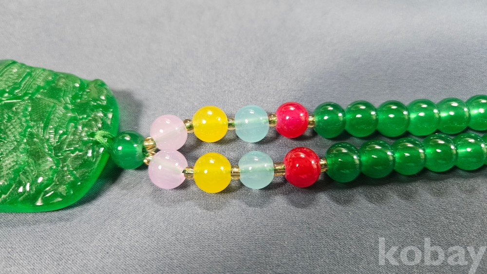 팬던트는 옥으로, 줄 부분은 유리로 여겨집니다.