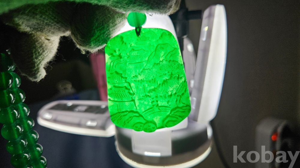 팬던트에 문양이 가득 조각이 되어있는 옥 목걸이 입니다.