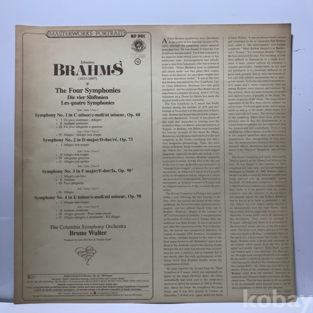 LP 83,660-25 BRAHMS The Symphonies The Columbia Symphony Orchestra Bruno Walter 3LP . 자켓 EX 알판 EX+ 수입반