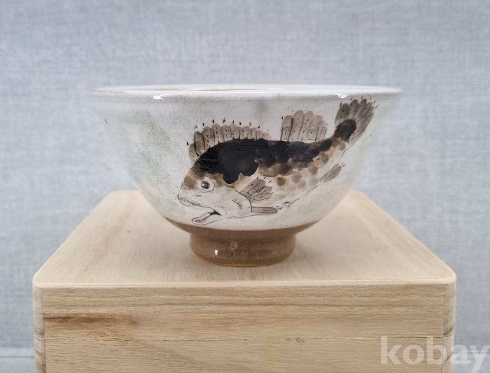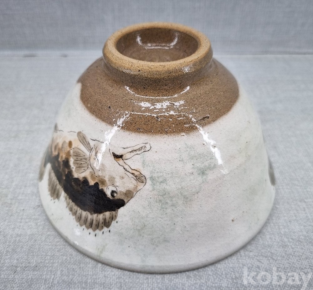 쏘가리의 섬세한 붓터치와 유약의 자연스러운 흐름이 어우러진 이 다완은,