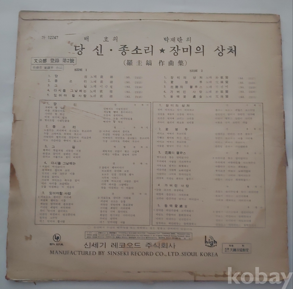 자켓상태 | VG : 주름, 접힘, 모서리 찢김 다수 | 음반상태 | VG : 생활 기스 다수, 가벼운 노이즈 존재 | 발매정보 | 초반 | 가사지여부 | 무 |