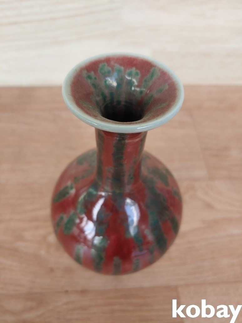 유약의 변화가 아름다운 주병형 도자기 입니다.