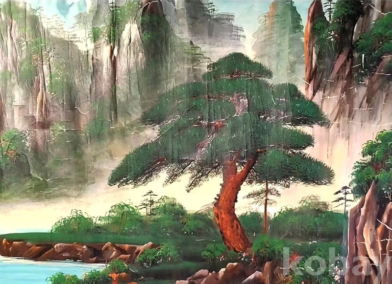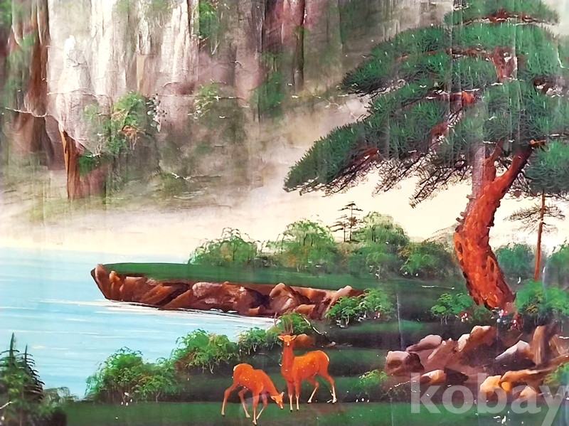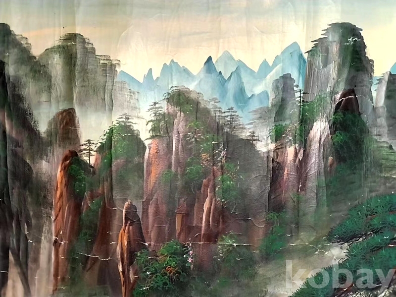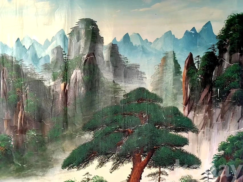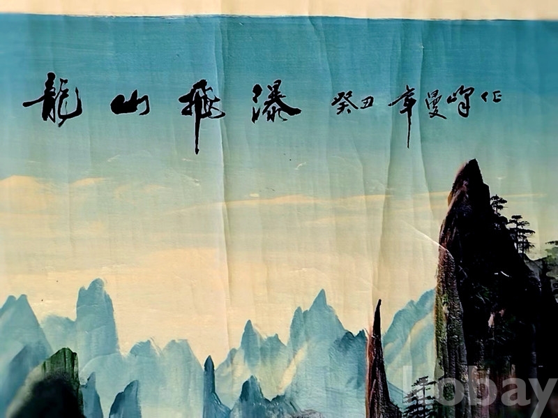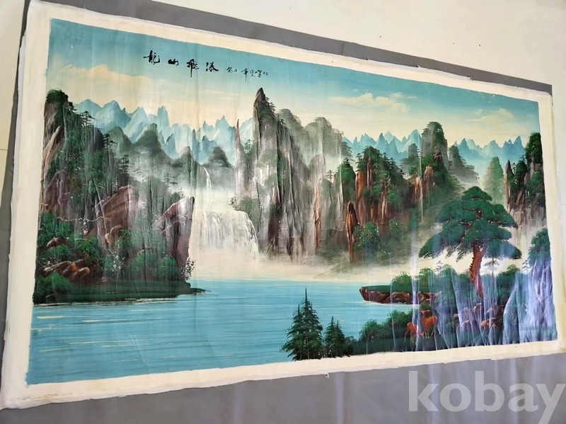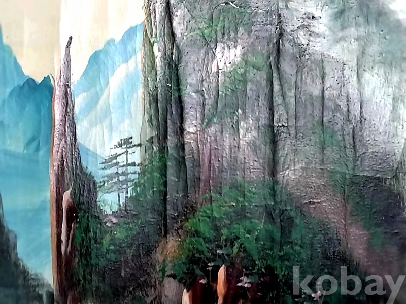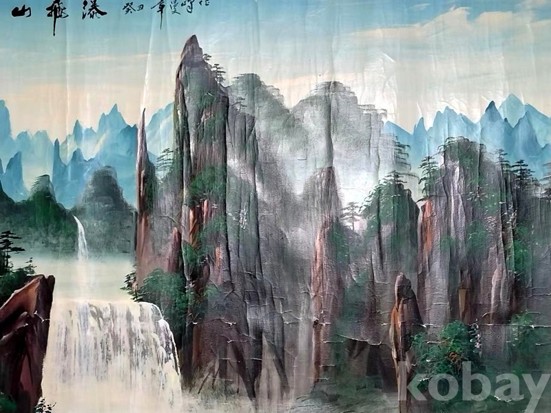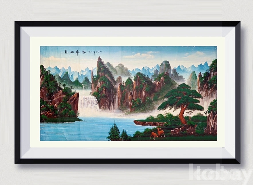 세계저명 중국화교화가 이만봉李曼峰 1973년 초대폭 캔버스유화 벽화임모도 장생도 용산비폭(龍山飛瀑)