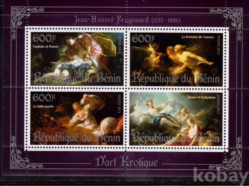 (누드명화) 베냉 2013 장 오노레 프라고나르 누드화 2 s/s(silver) MNH