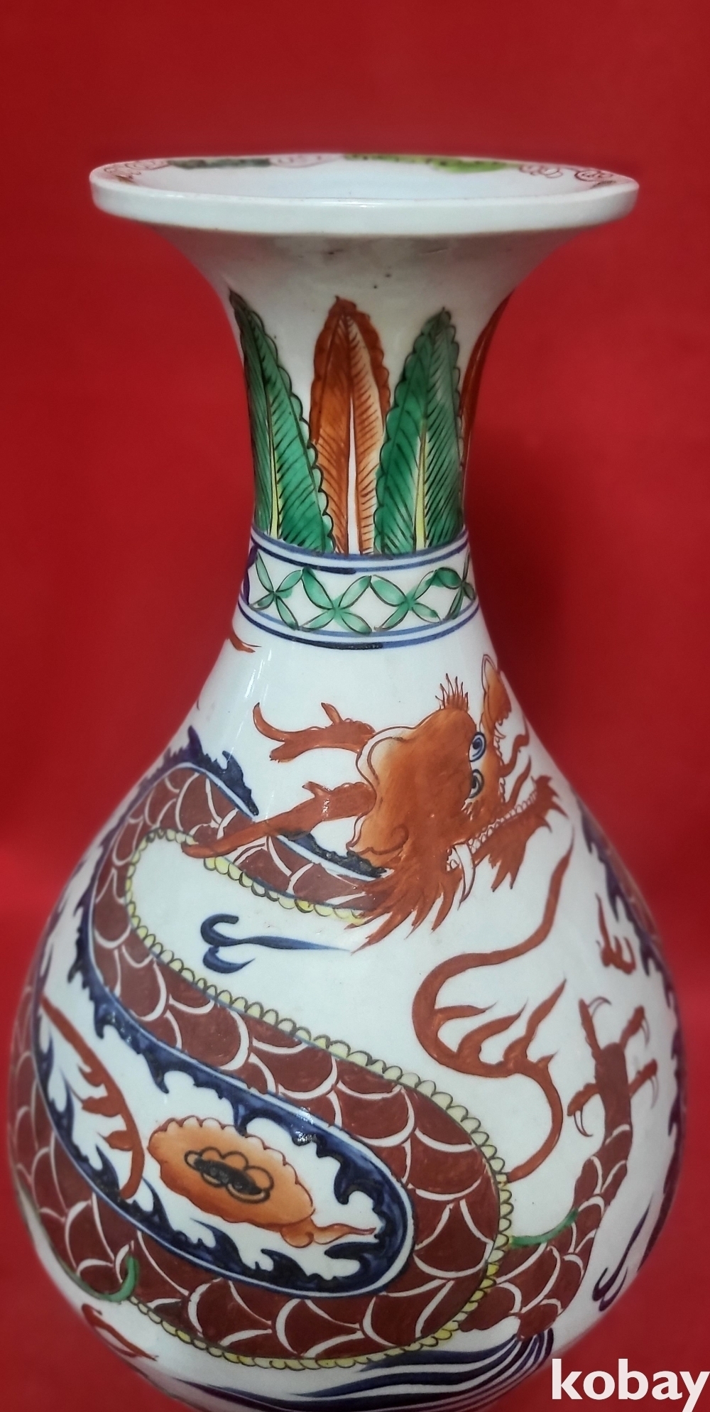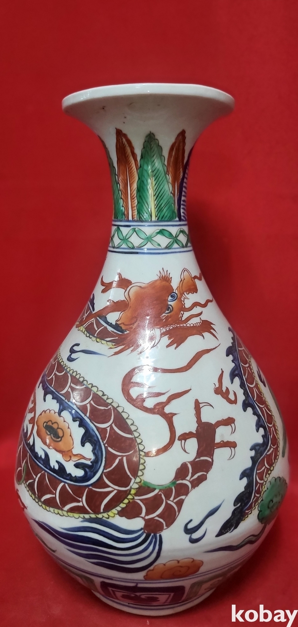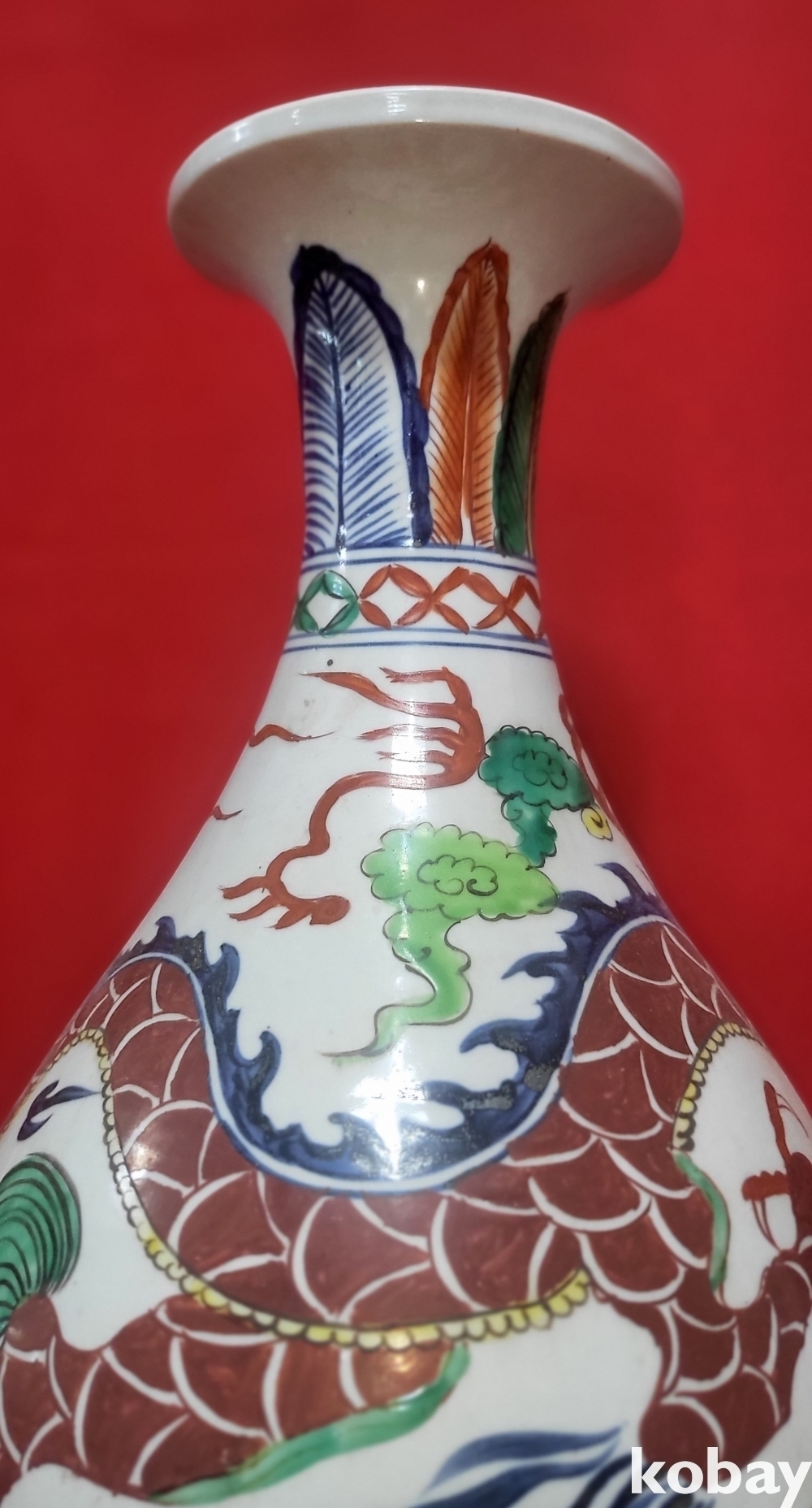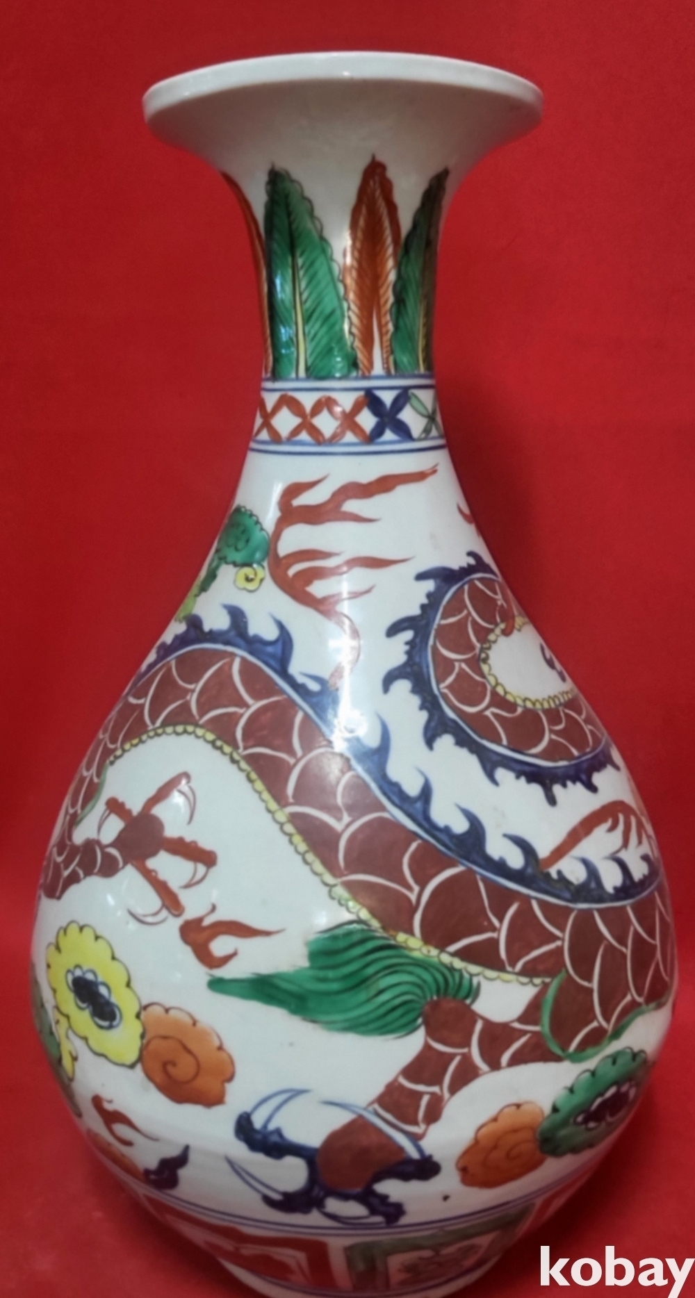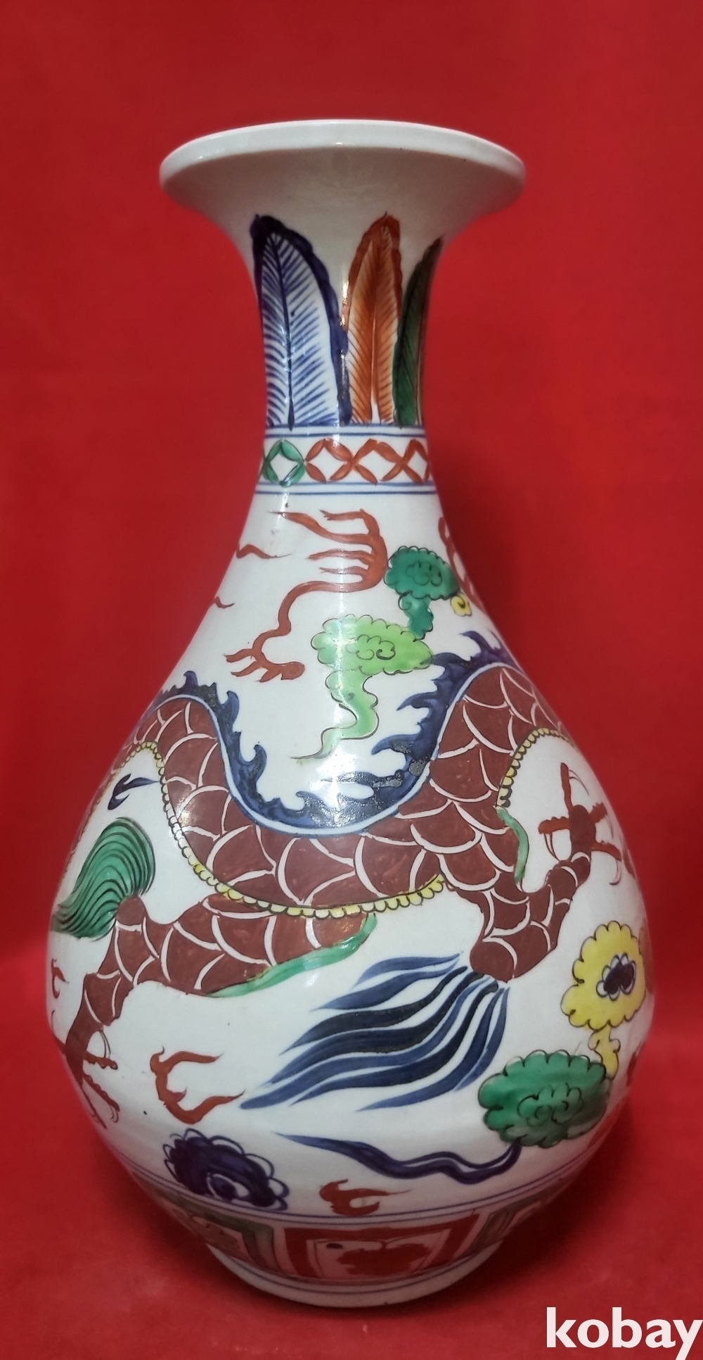 모든 구름은 청화이며 봉황 그리고 측면의 화훼문양은 유리홍으로 완성된 기물입니다,