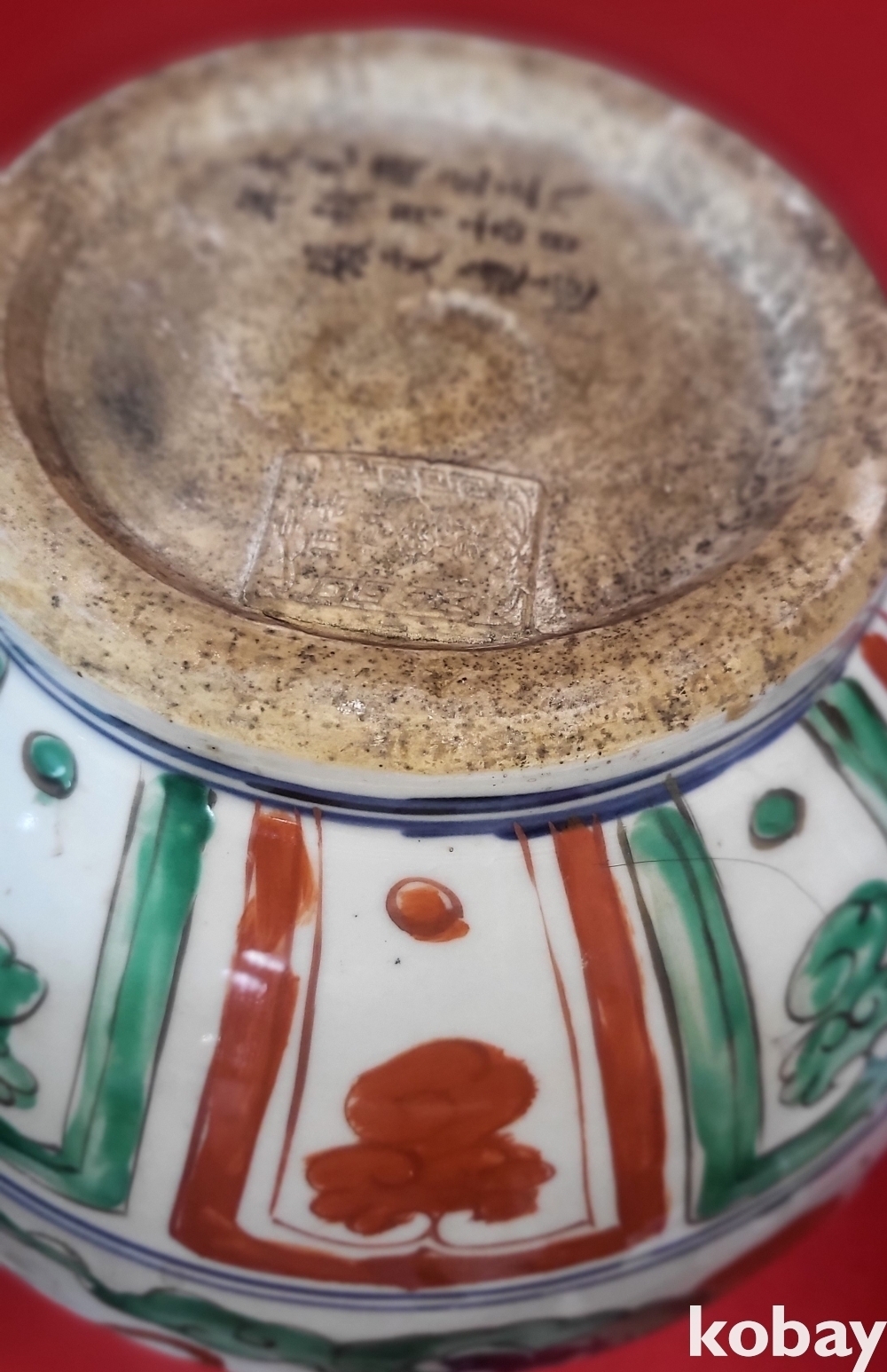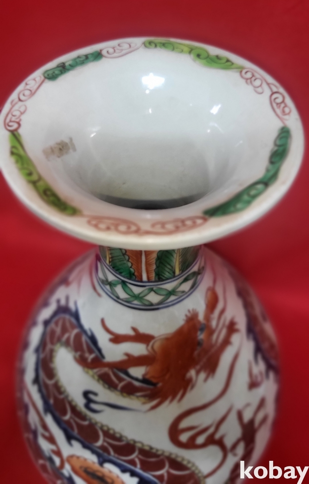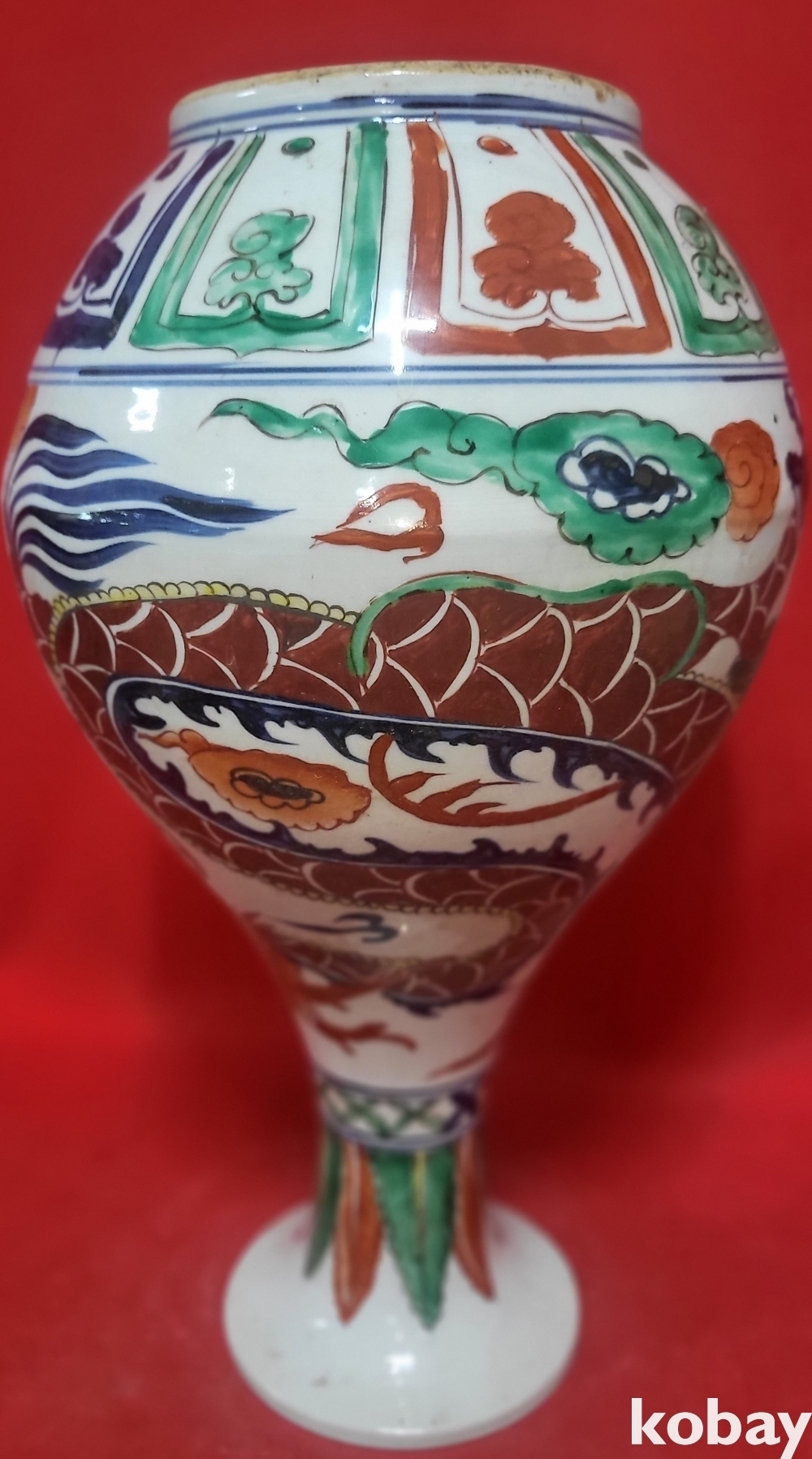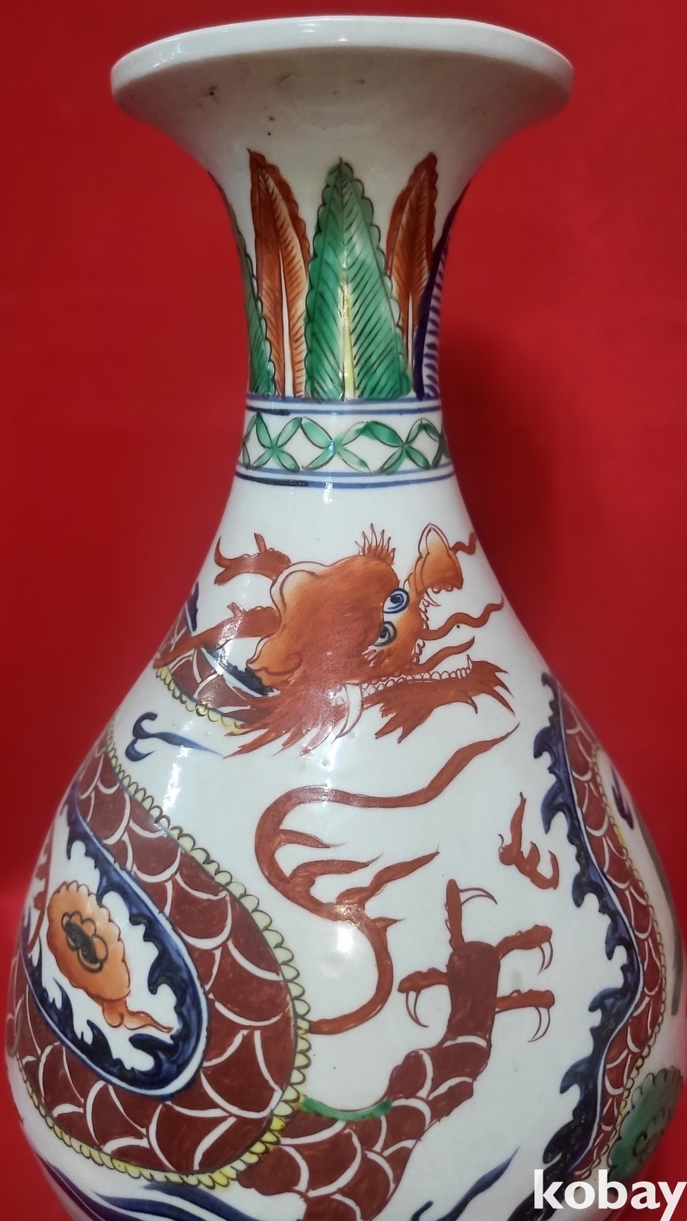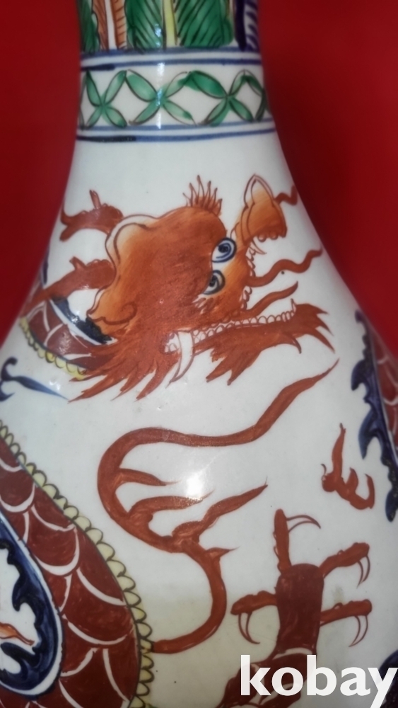 모든 구름은 청화이며 봉황 그리고 측면의 화훼문양은 유리홍으로 완성된 기물입니다,