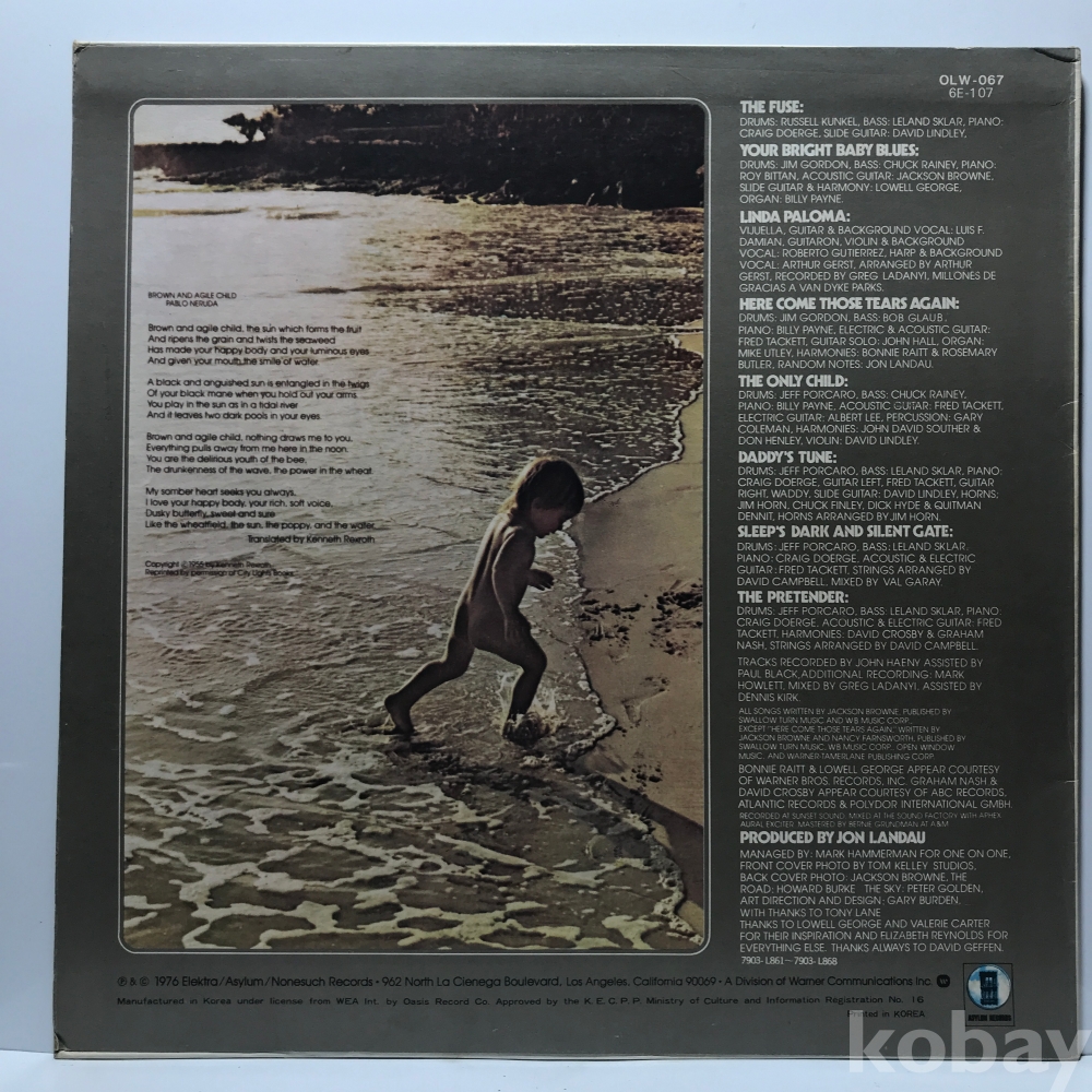LP 34,910-20 Jackson Browne . ` 79 오아시스 자켓 EX+ 알판 EX