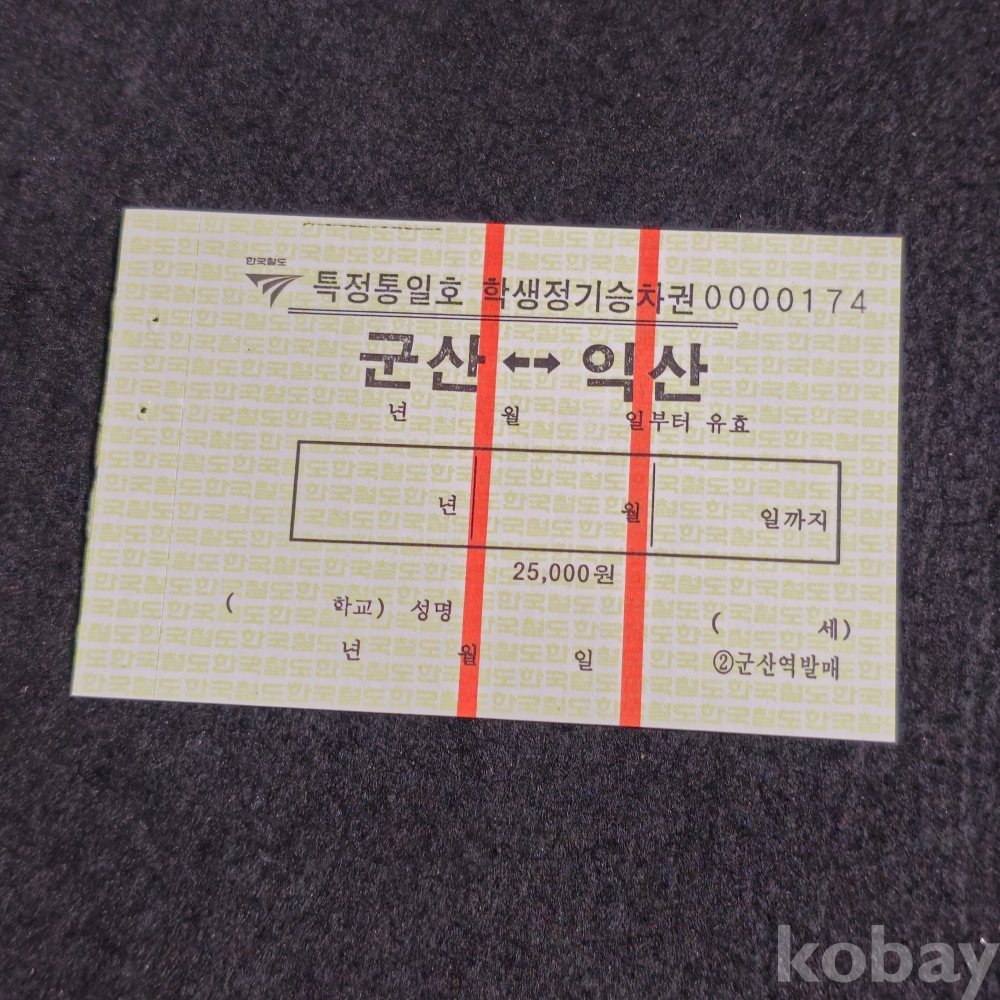(천원경매) (((철도자료))) 오래전 한국철도 특정통일호 학생 정기승차권 (군산역발매)