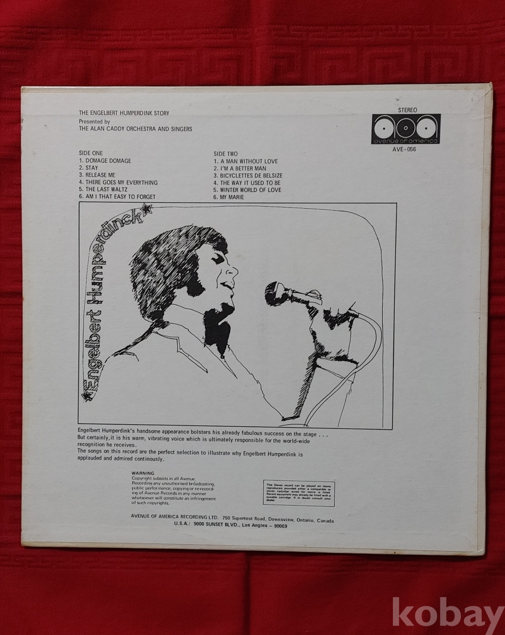 팝 락 / Englebert Humperdinck 앨범입니다 / 트랙은 별도로 제공합니다 / Nm/ 캐나다