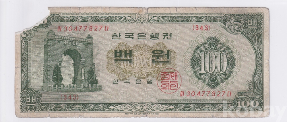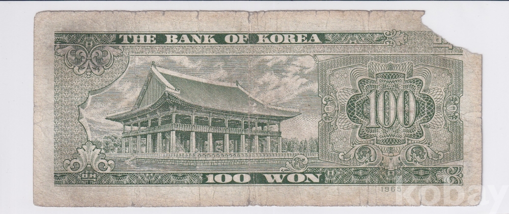 - 한국은행 1965년 경회루 백원 사용제 지폐