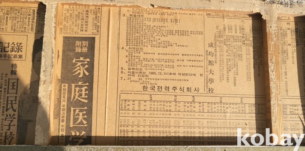 #### 본 작품의 뒷면에는 1966년 성균관 대학교 광고가 실린 신문은 함께하지 않습니다,