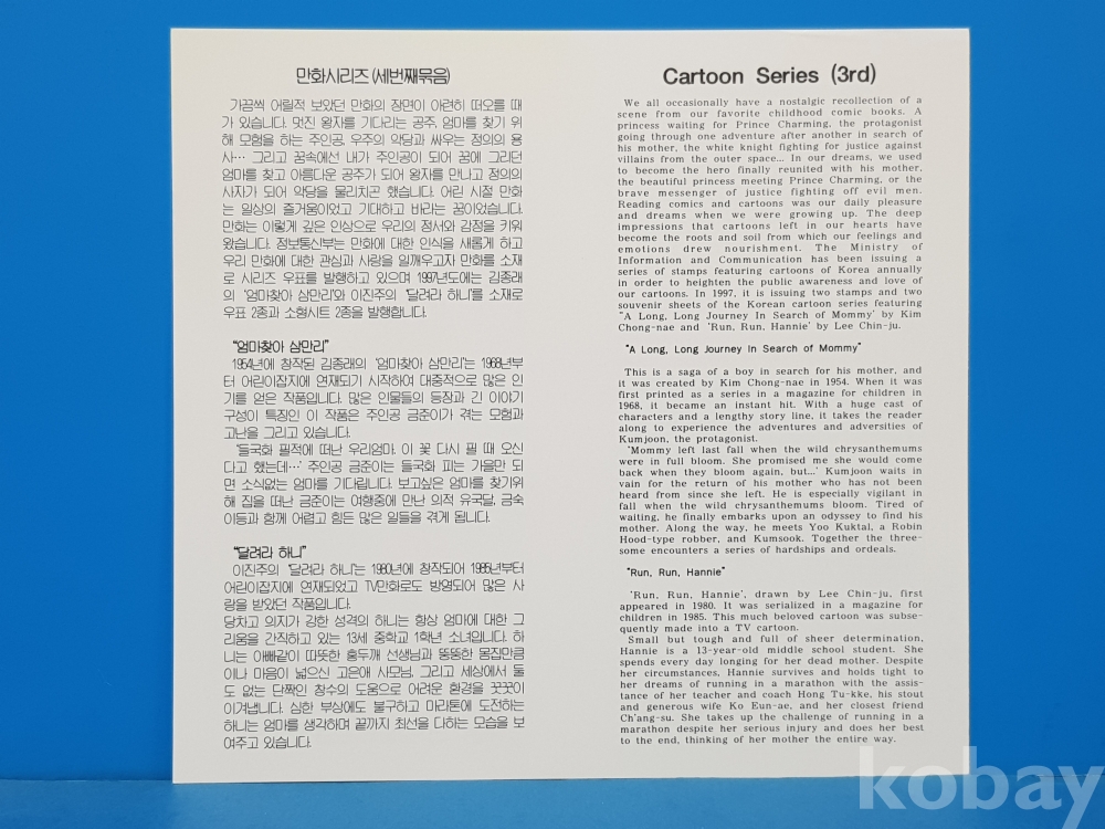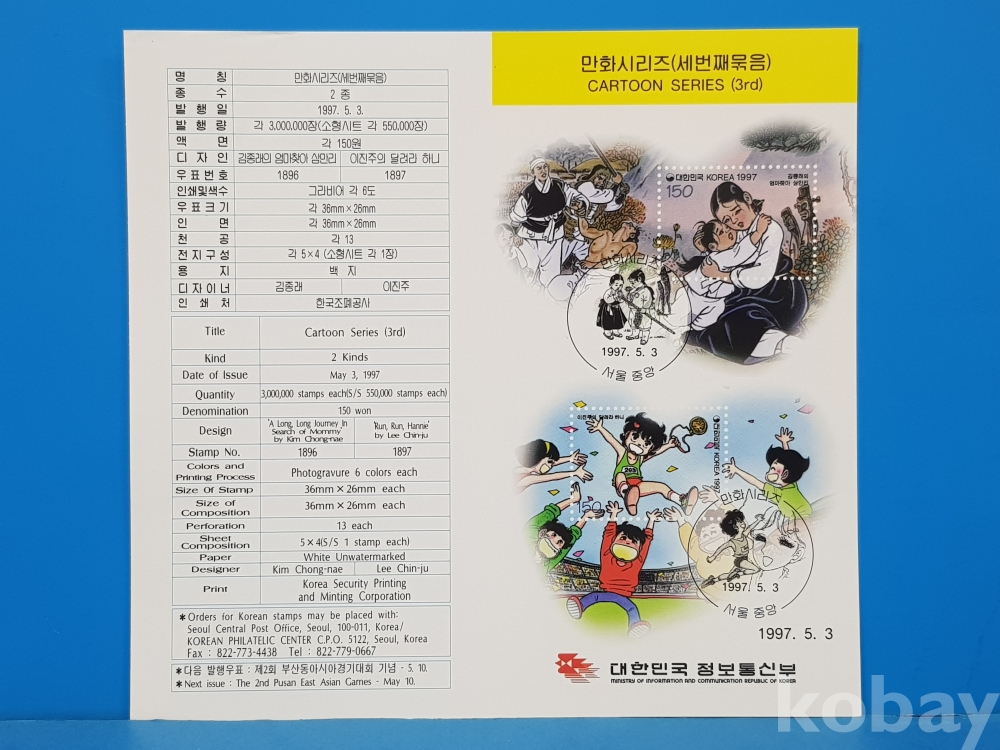 **** 만화시리즈(세번째묶음)/1997.5.3/대한민국 정보통신부*색 변함, 찢김, 접힘 등 있을 수 있음