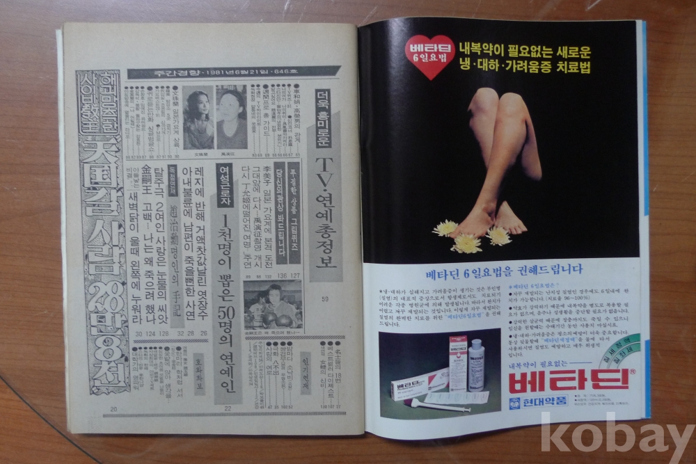 1981년 주간경향 잡지 - 표지모델 탤랜트 김영란 -