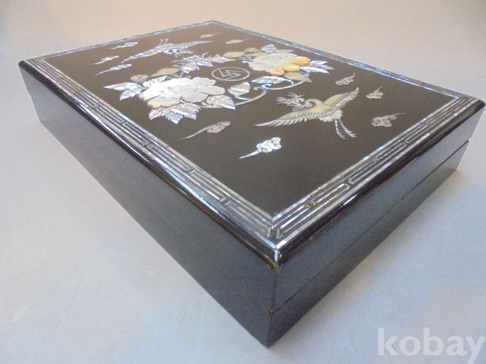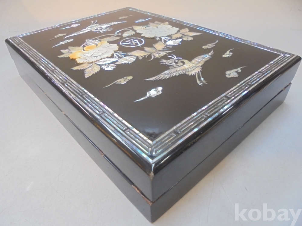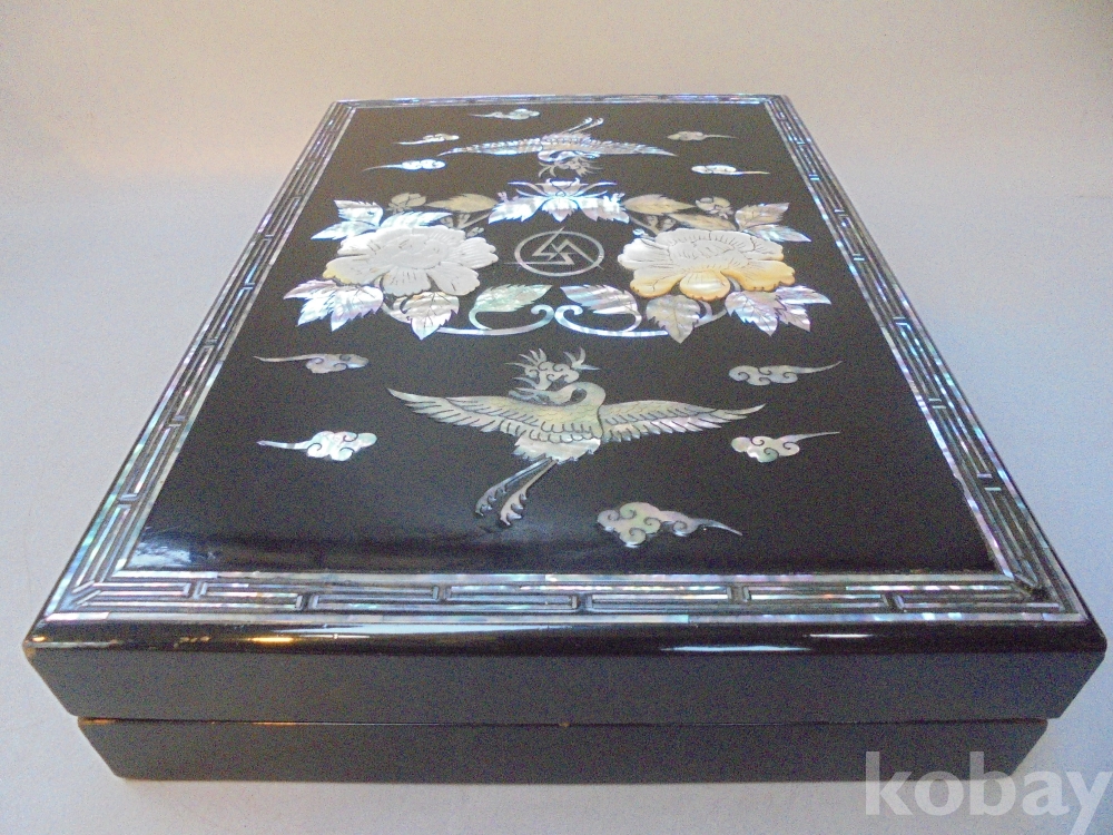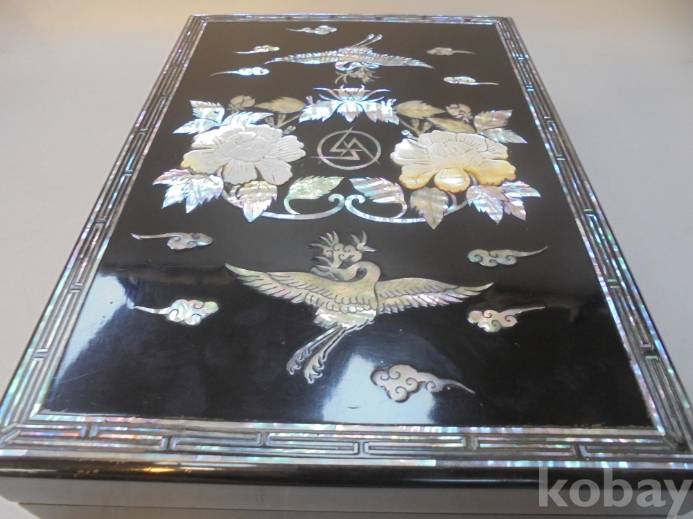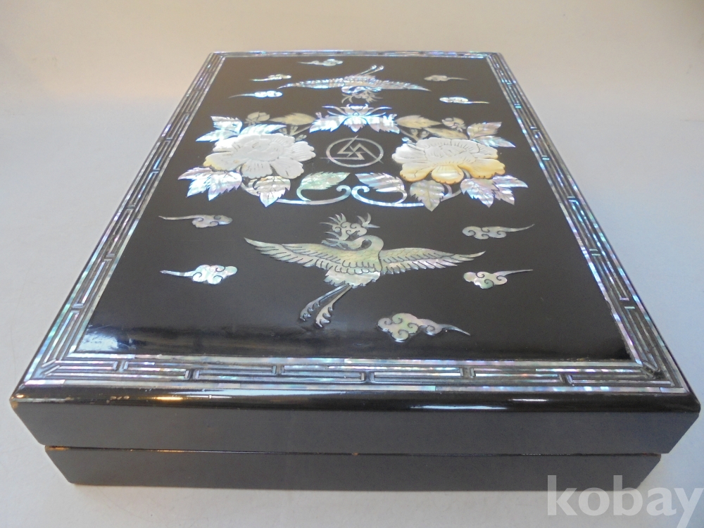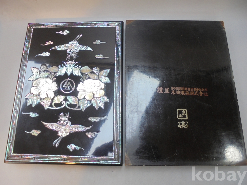 옛날 " 경성전기 주식회사 " 주주총회 기념으로 제작되어진 운학문 자개 합 입니다.