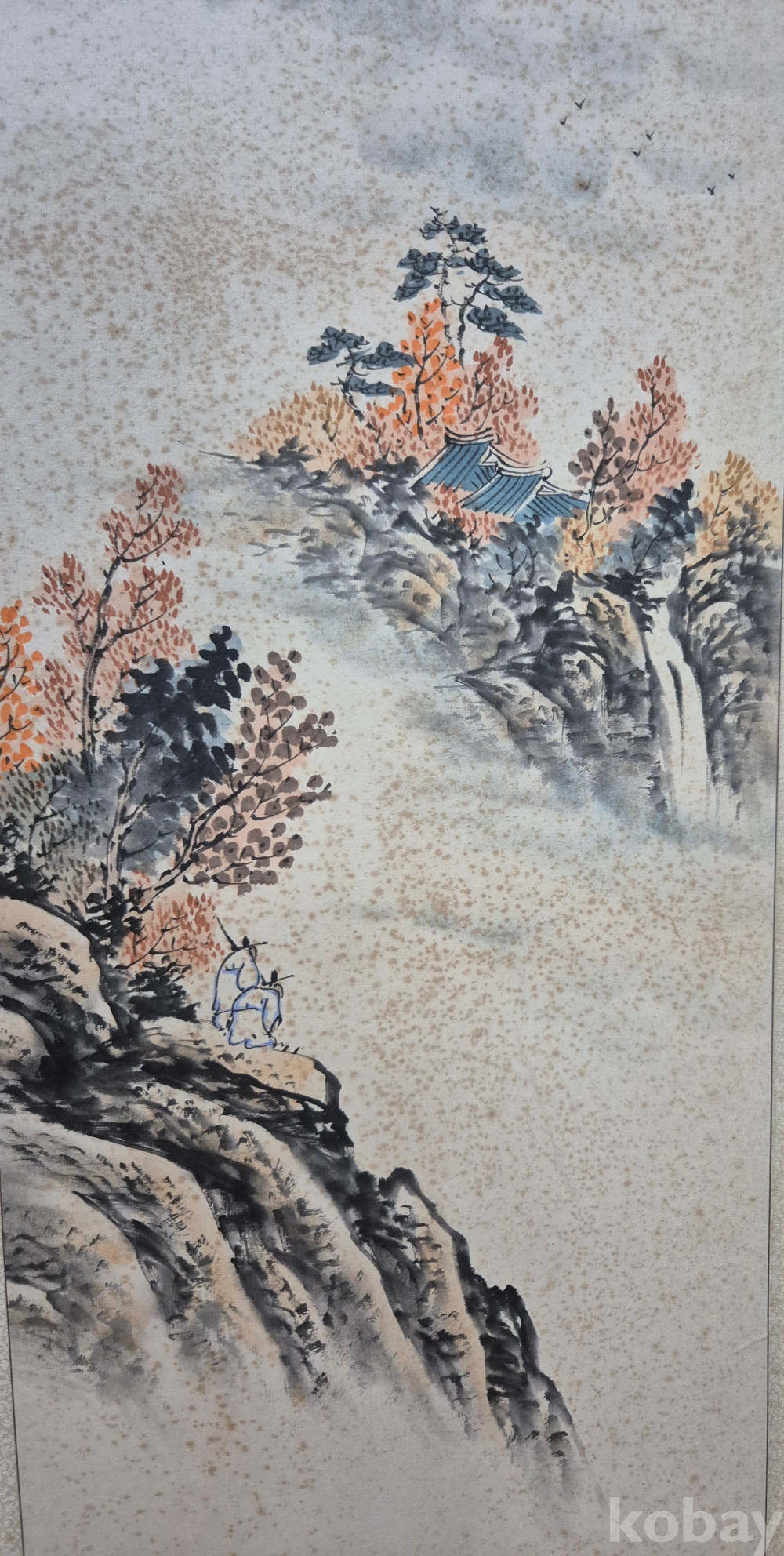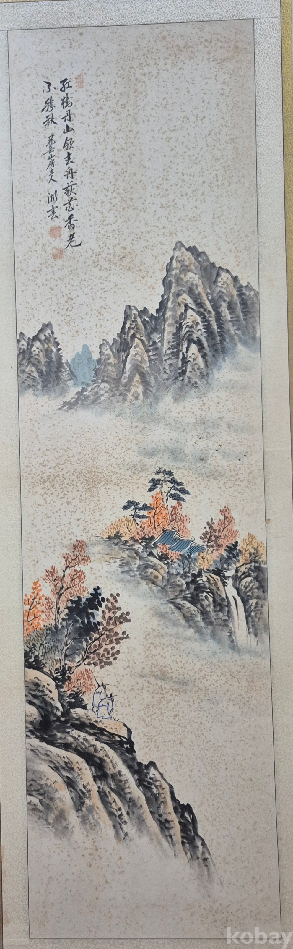 폭포가 어우러진 시원스럽게 잘 그려진 추경 산수화'이오니 작품 이미지상 수결 및 낙관'등 두루 잘