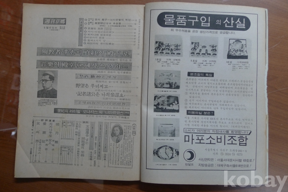 1969년 주간경향 잡지 - 표지모델 영화배우 최인숙 -