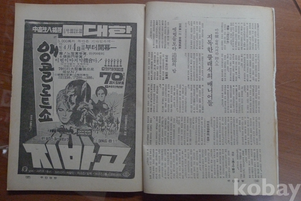 영화 지바고, 황양의 7인, 동물의 영화 궁갈라 여타잔 광고 전단