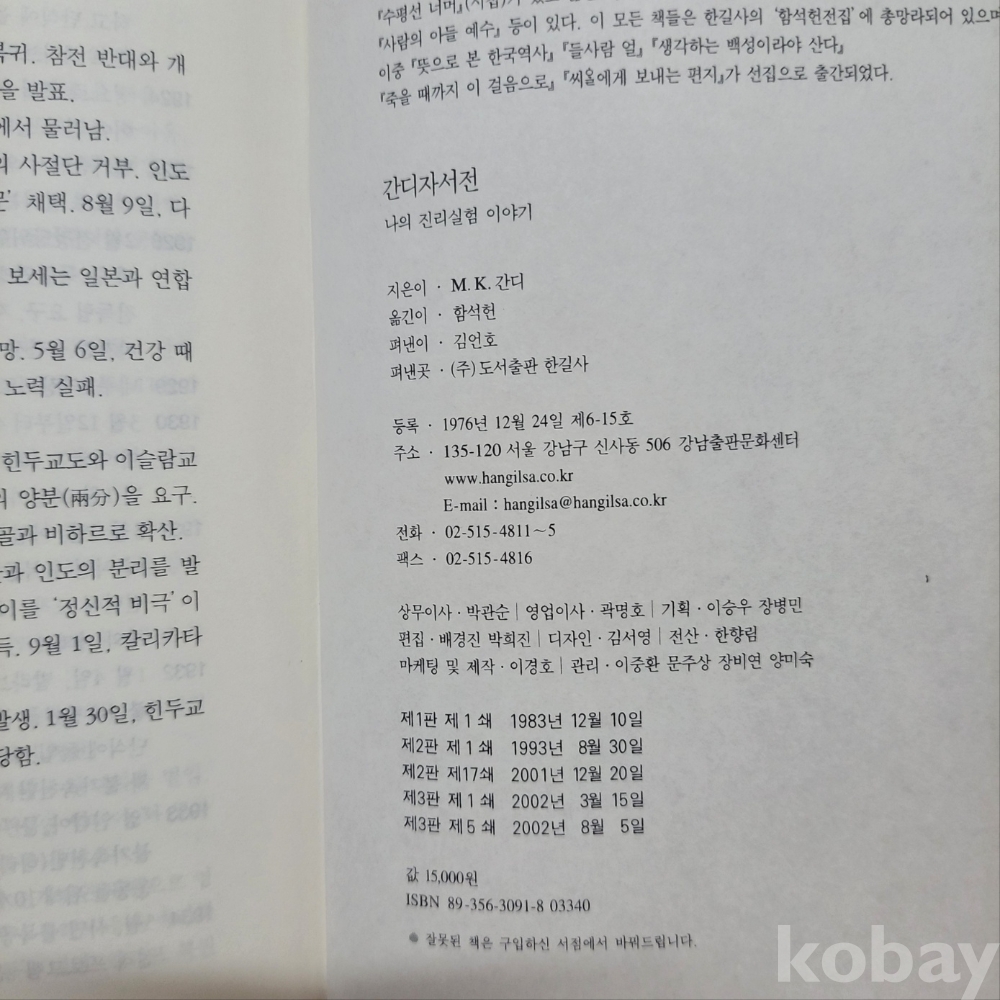 [천원경매] 간디 자서전 - 나의 진리 실험 이야기 / 함석헌 선생 번역본 입니다.