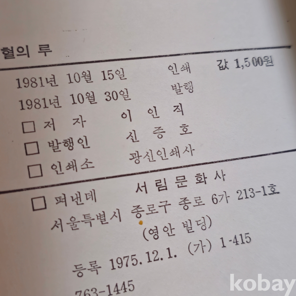 (((서적))) 한국문학의 길잡이 - 혈 (血) 의 루 (淚) 李人稙 著 (1981년 발행)