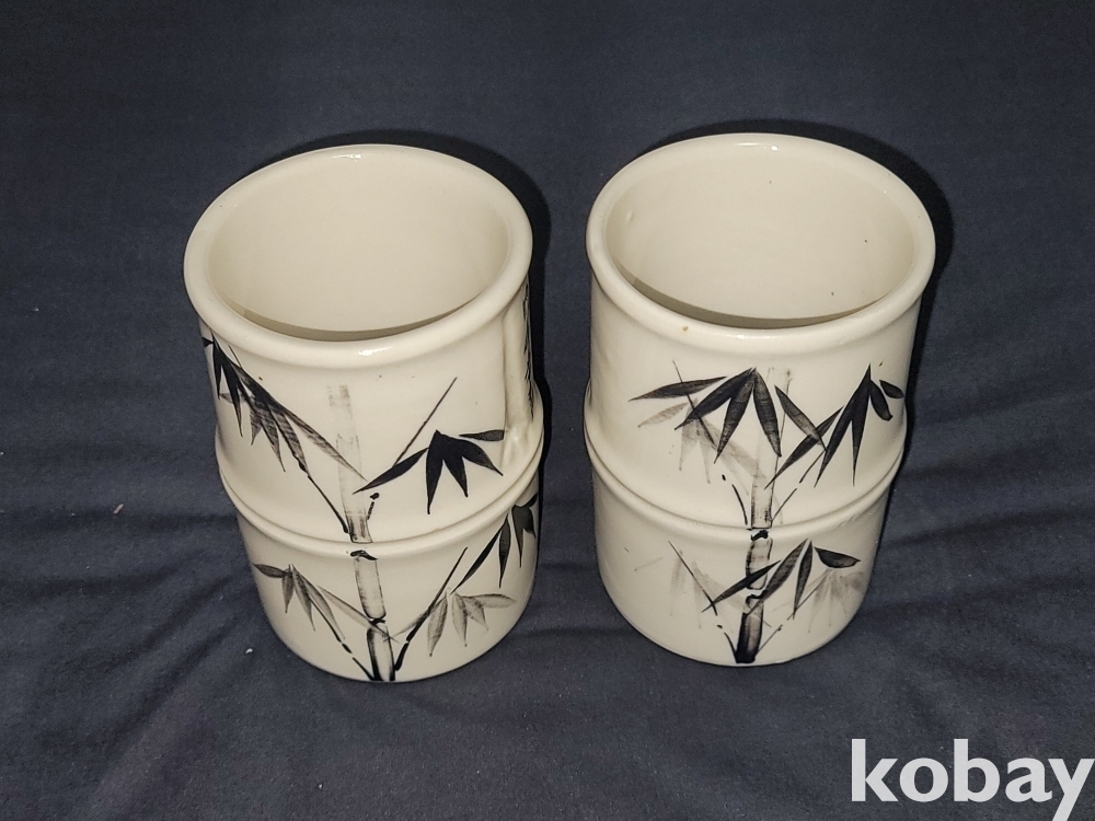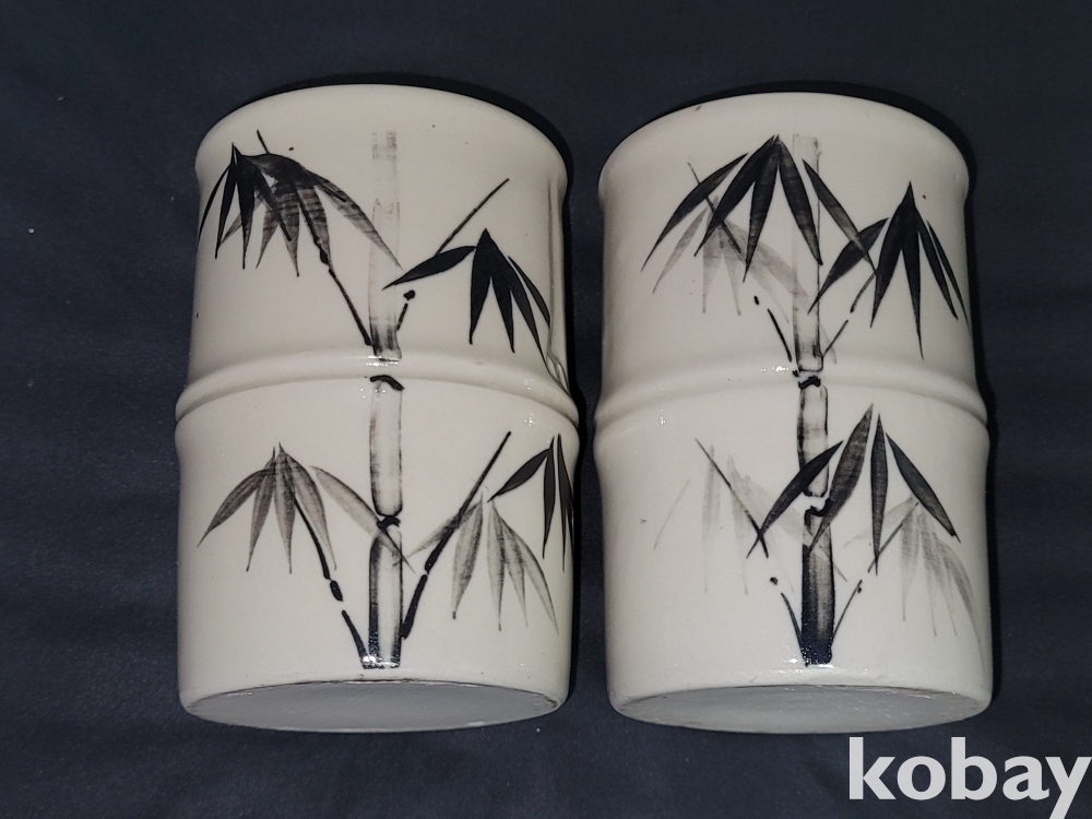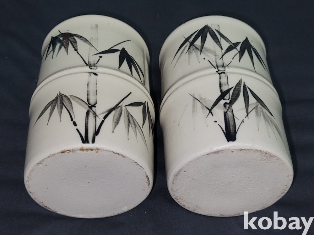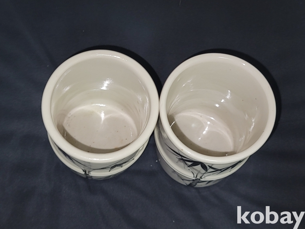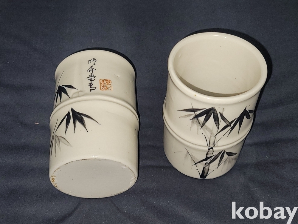 대나무 그림이 그려진 도자기 작품 2점 일괄입니다.