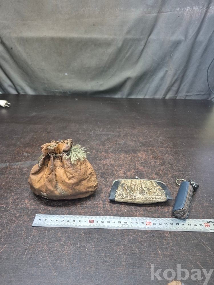 1970-80년대 가죽으로 만든 복주머니 1점 어머님 동전지갑 1점 휴대용도장주머니 15*10*14
