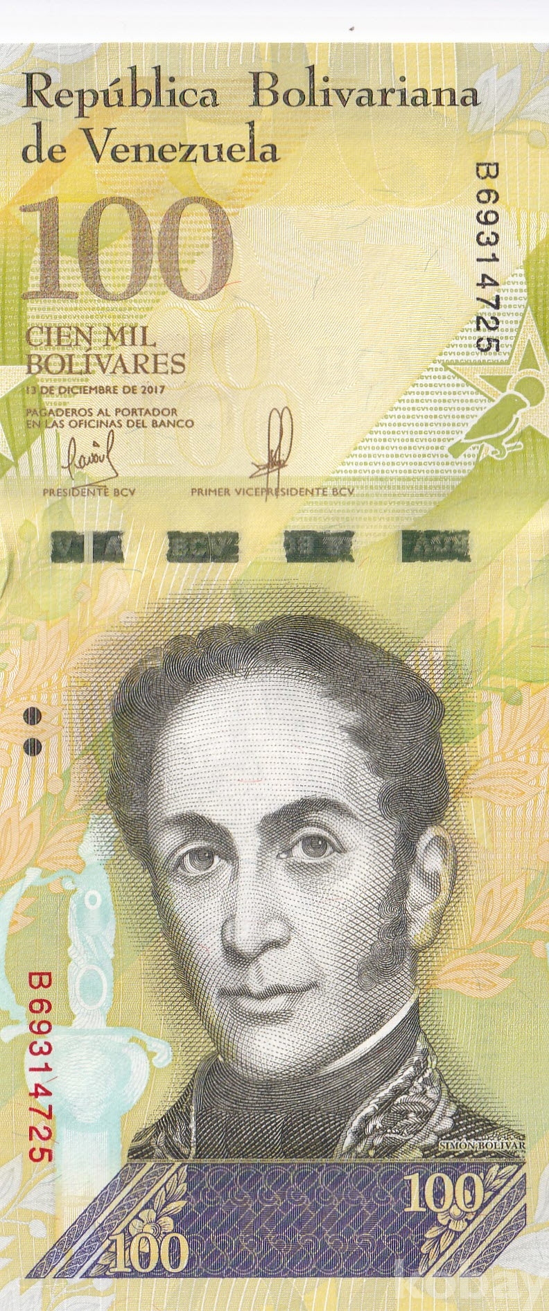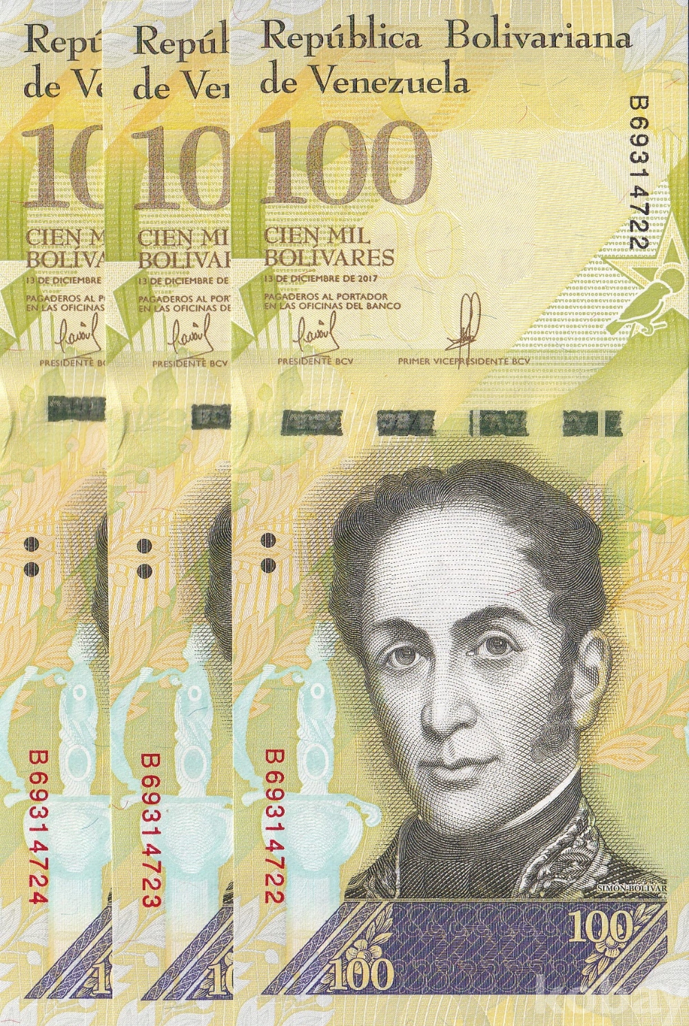 - 베네수엘라 2017년 100 볼리바르 3연번 미사용 지폐