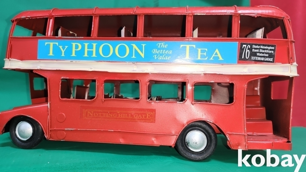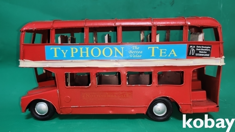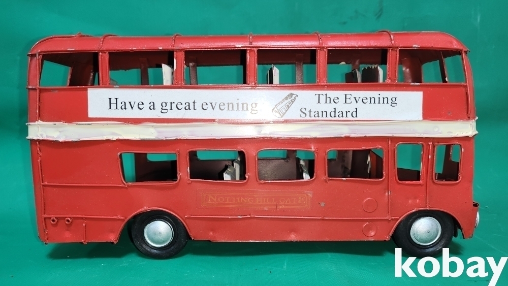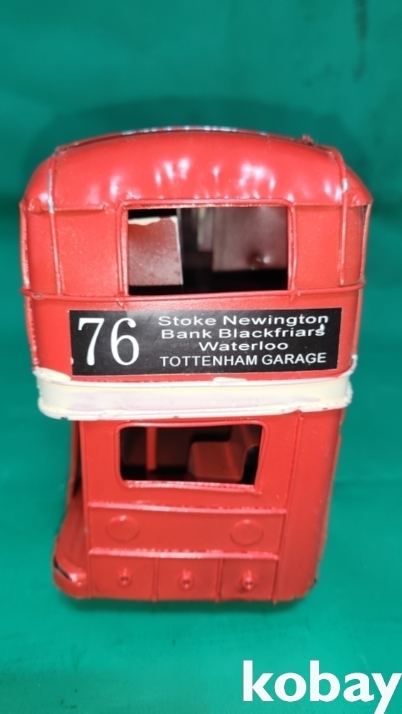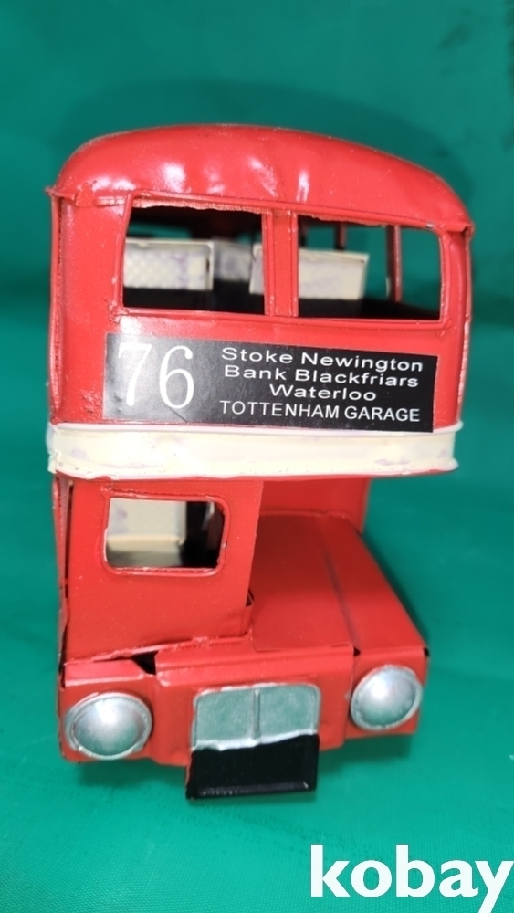 양철공예품으로 굴러다니는 멋진 2층 버스 자동차입니다,