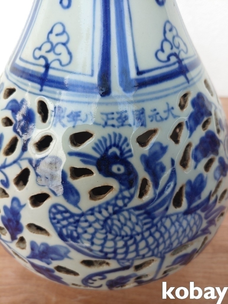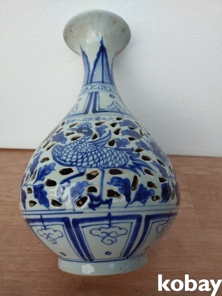 새와 꽃 그림 투각 도자기 입니다.