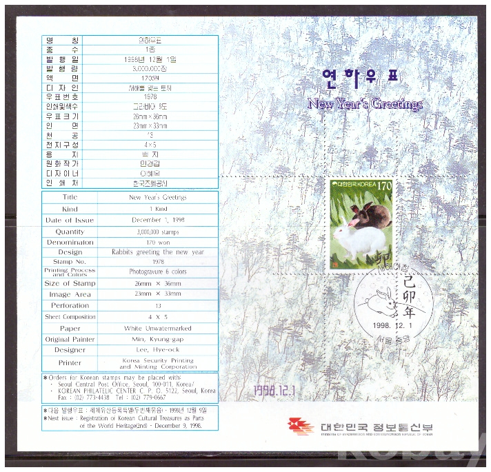 (안내카드) 1998.12.1 연하우표 (접지않음)