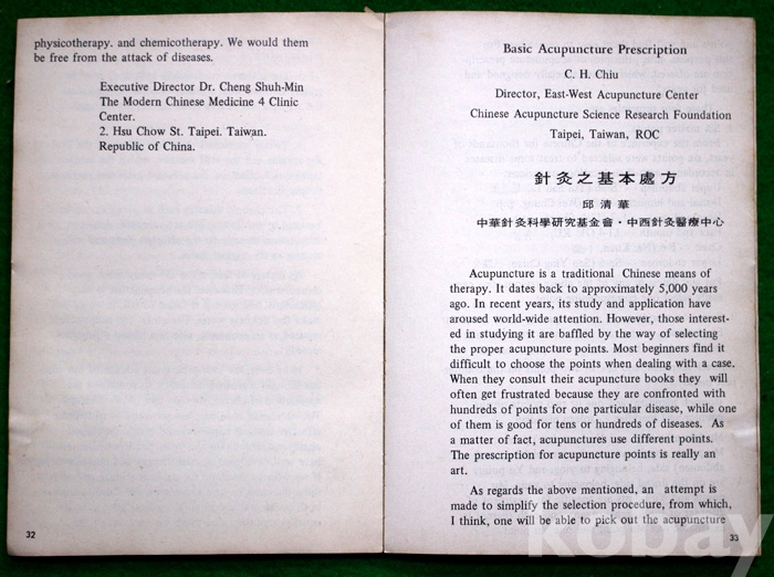 1975년 제4차 세계침구학술대회 중화민국대표단 手冊 - 중국 발행..
