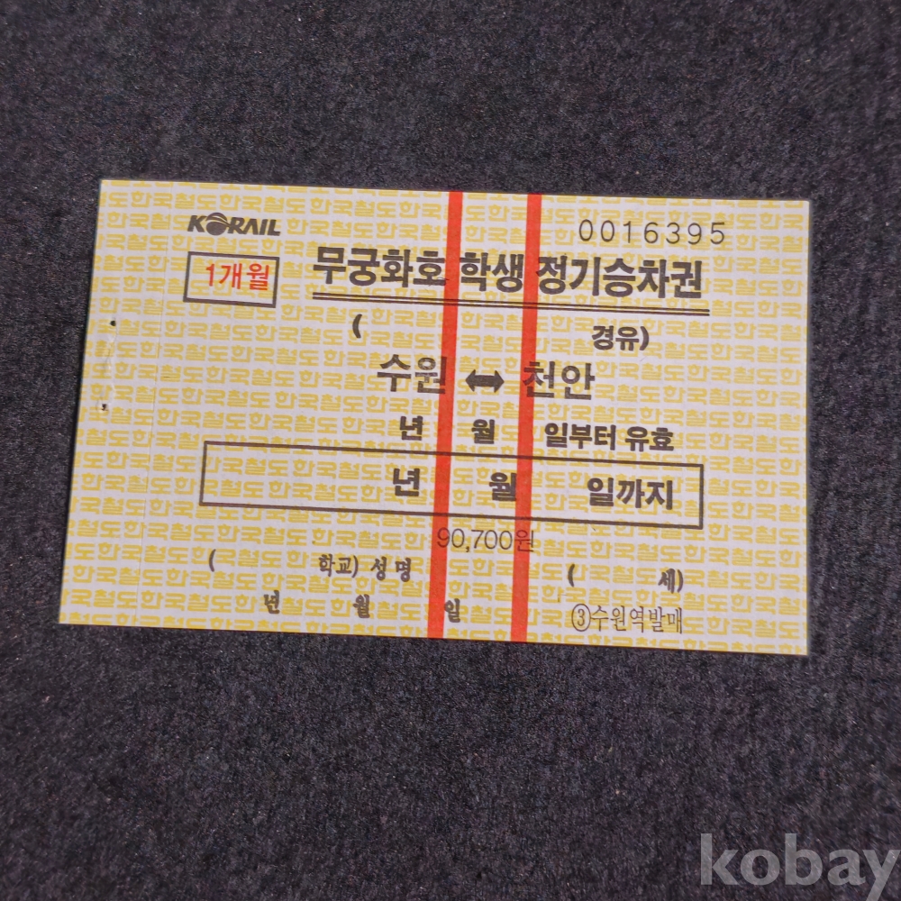 (천원경매) (((철도자료))) 오래전 KORAIL 무궁화호 학생 정기승차권 (수원역발매) (1개월)