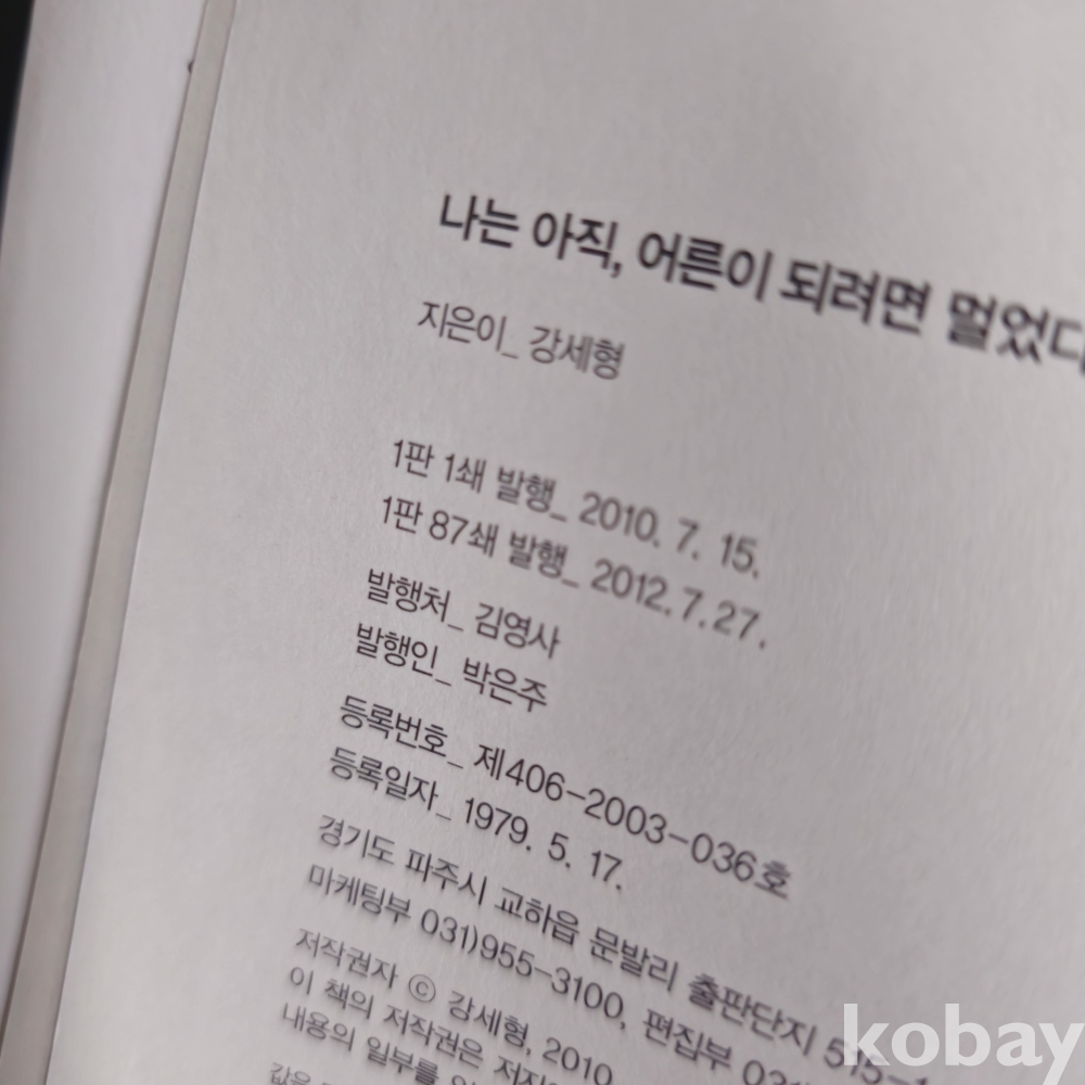 (천원경매) (((서적))) 나는 아직, 어른이 되려면 멀었다 (강세형) (2012년 1판 87쇄)