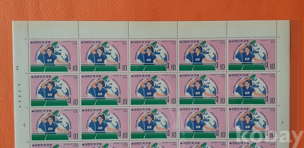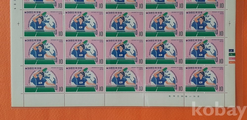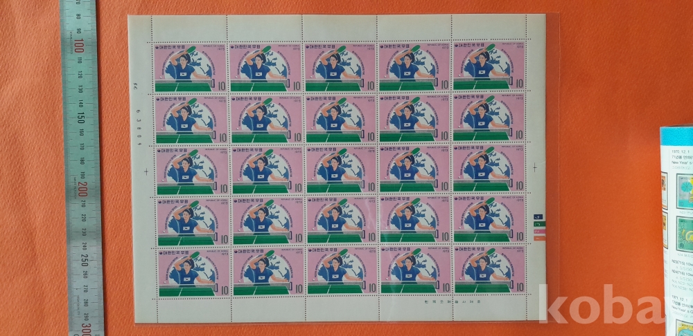 1973년 5월 23일 발행 제32회 세계탁구선수권대회 세계 제패 기념 25매 전지 입니다.