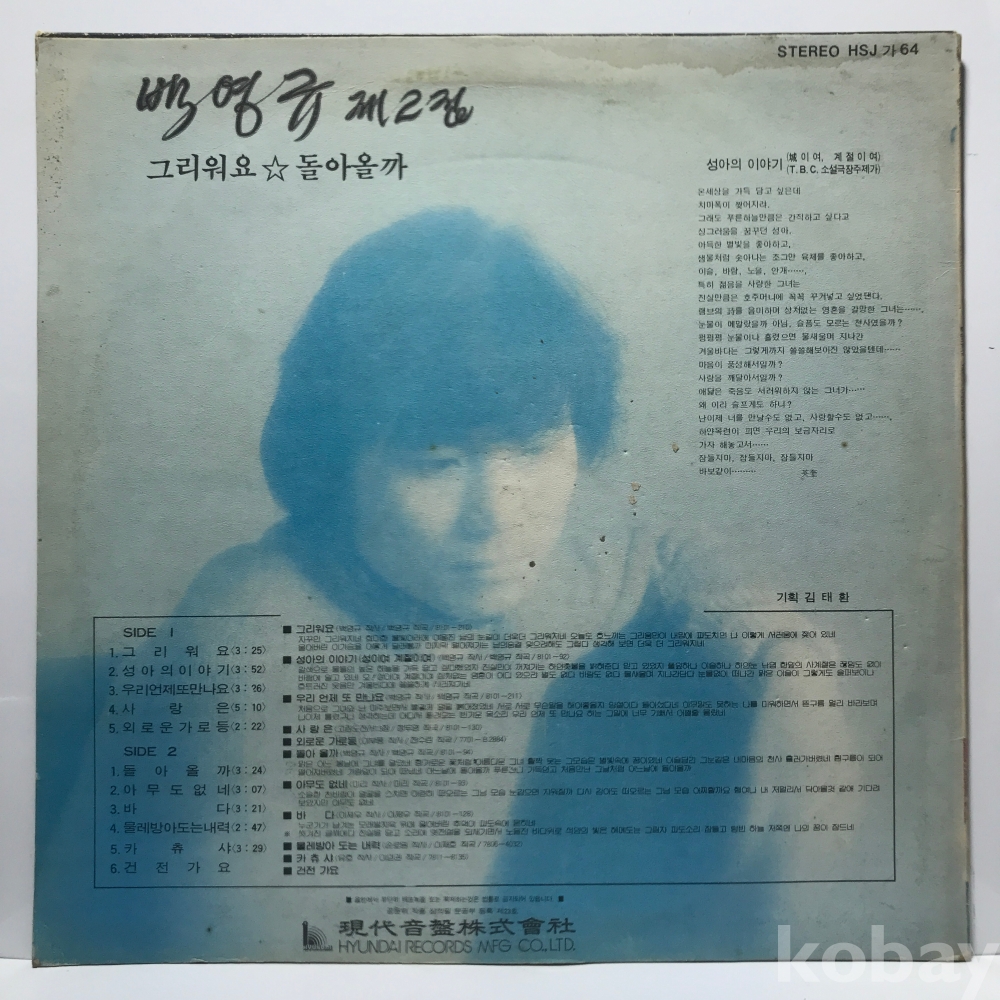 LP 34,810-3 백영규 제2집 - 그리워요/ 돌아올까 . ` 81 현대 자켓 EX 알판 EX