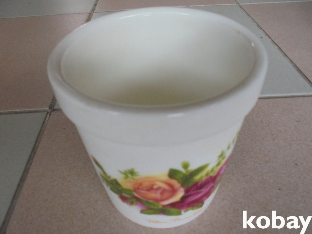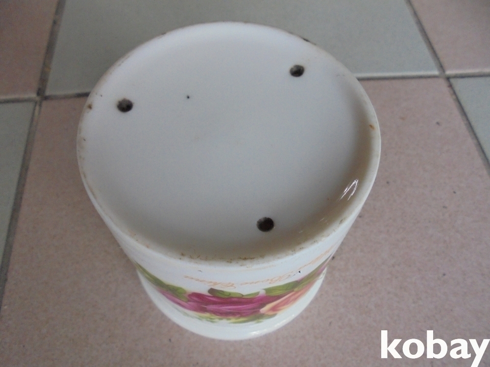 밑에 3개의 구멍있고 이국풍의 장미화가있고 전에 자바라가 있는 오래된완벽한 백자 예쁜장미화 귀한수저통